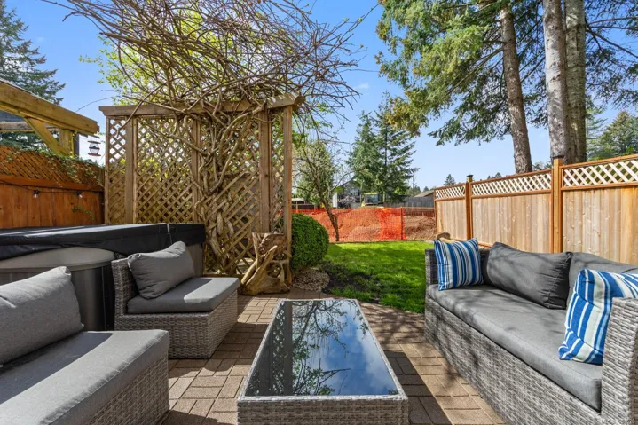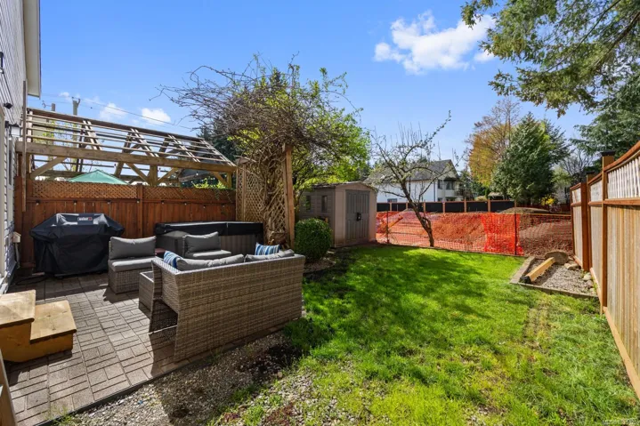 Perfect starter home-well maintained half-duplex with updates throughout in a family-friendly neighbourhood and no monthly strata fees. This 3 bedroom plus den home features a bright, open floor plan with lots of natural light, a fresh coat of paint and new trim. Other updates include the half bathroom on the main (2024). There is a spacious kitchen with a new built in OTR microwave opening into the dining and living areas-perfect for entertaining! Upstairs, a generous primary bedroom with a separate ensuite, two additional bedrooms, and a dedicated den for your home office. Enjoy peace of mind with a newer roof (5-6 yrs) and gas furnace (3 yrs). The garage is a hobbyist’s dream with a built-in workbench and custom shelving. The back yard features a brand new deck and a fully fenced yard, a hot tub, mature apple tree and kiwi vine, and natural gas BBQ hookup. Located near schools, parks, and transit, this is a fantastic opportunity for first time home buyers, families, or investors.