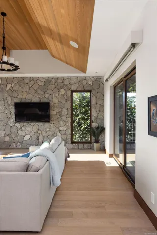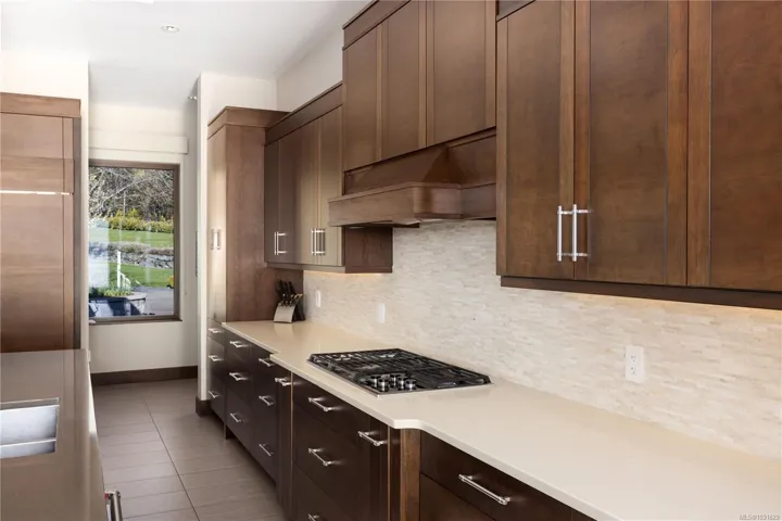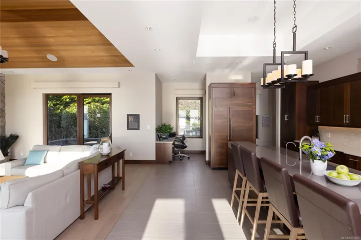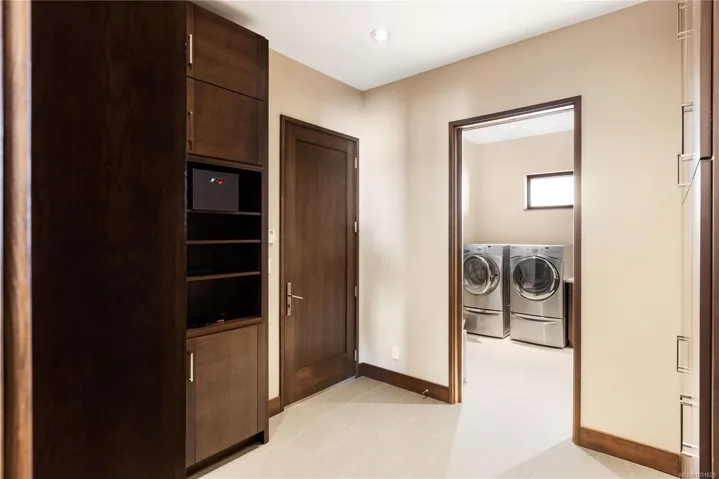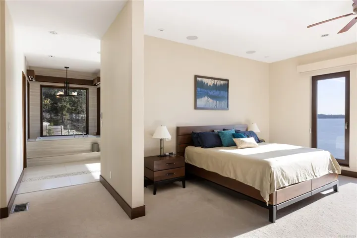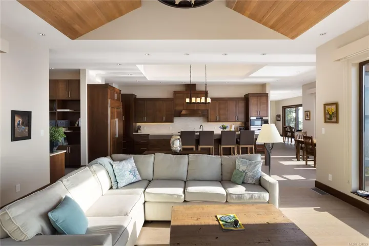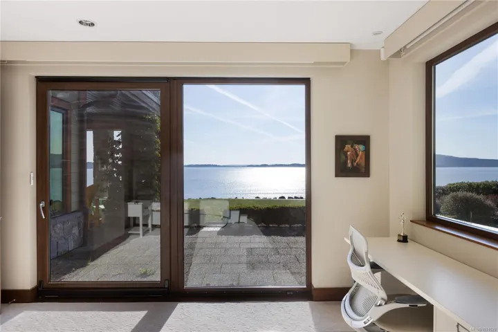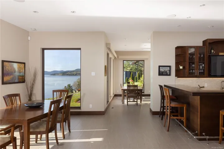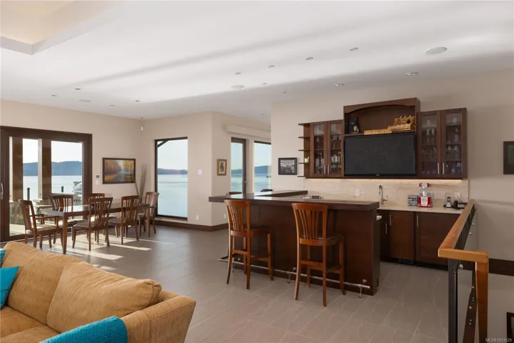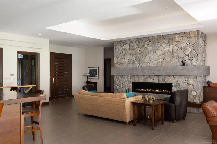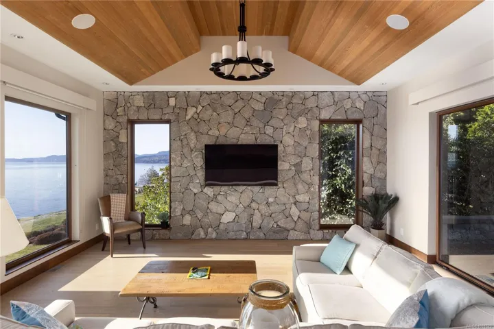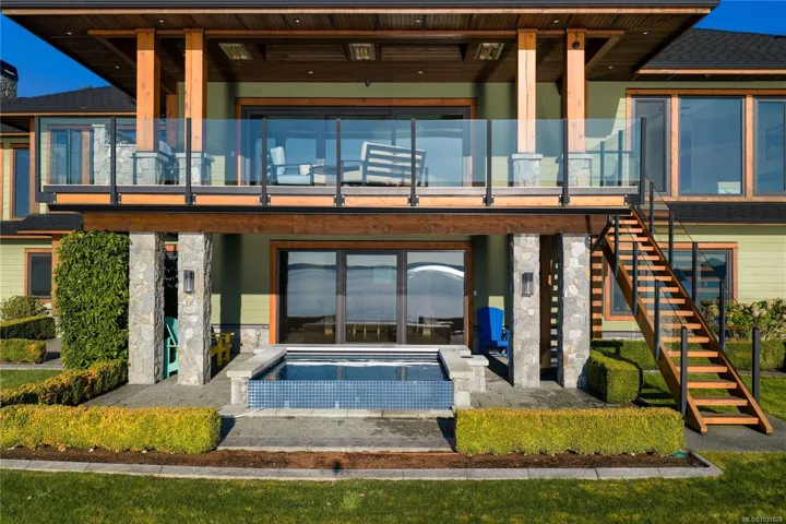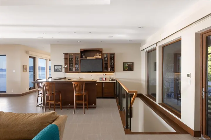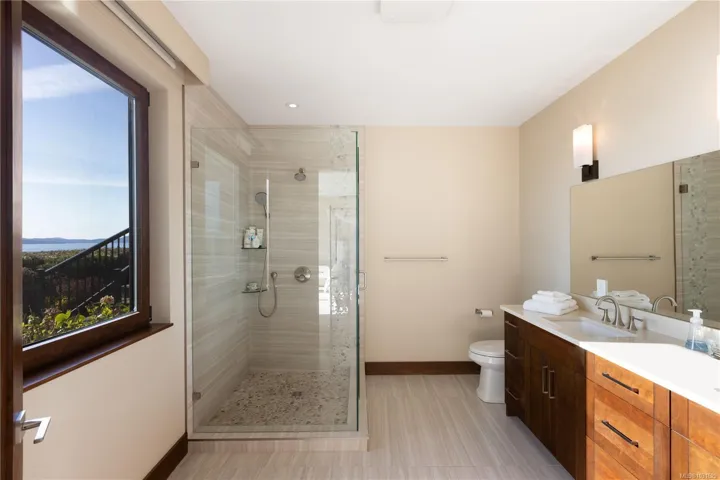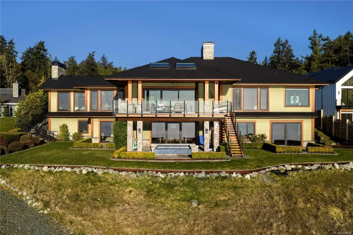 Perched above the shoreline, this exceptional oceanfront residence offers sweeping, unobstructed views across the water. Spanning over 7,300 sq ft, the home is thoughtfully designed with light-filled interiors, clean lines, and timeless finishes throughout. The main level features expansive living and dining areas that open onto a covered deck, creating effortless indoor-outdoor flow. A beautifully appointed kitchen with a large island and premium appliances anchors the home, complemented by a secondary family area for more relaxed living. The main floor is complete with a guest suite and wine cellar, adding both convenience & sophistication. The primary suite offers spacious walk-in closets and a spa-inspired ensuite with a stunning outlook. The lower level extends the living space with a recreation room, bar, and direct access to the patio and infinity-edge hot tub. Set behind a gated entry with a circular driveway and triple garage, this is a private and refined waterfront offering.