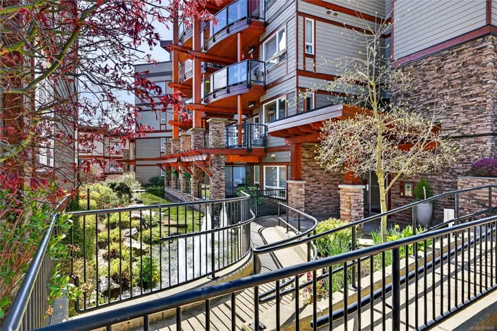 O/H SAT APRIL 18 11-1! NEW AND IMPROVED! A true west coast oasis, this FRESHLY PAINTED, spacious 2 bed/2 bath condo offers the unbeatable convenience of being within walking distance of all Sooke’s Town Core amenities, while offering the peace and tranquility that comes with being perched along Sooke’s harbour. The spacious floor plan invites you in, beautiful hardwood flooring and gleaming granite countertops captivate you and the meditative trickling from the gorgeous pond outside relaxes you. Enjoy relaxing and bbqing all year round on your covered and HEATED balcony, peek-a-boo ocean views and upgraded appliances! Thoughtfully constructed, both bedrooms feel like primary’s thanks to each having access to bathrooms which include top of the line accessibility features such as a walk-in tub, grab bars and a touchless bidet, ideal for those wanting to maintain their independence for years to come. This condo is truly a west coast wonder – call to book your showing today!