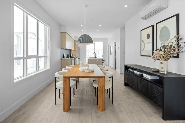 Sophisticated design & thoughtful craftsmanship define the Coastal plan at Echo Townhomes — 1,506 sq. ft. of beautifully appointed living spread across 3 sun-filled levels. From the moment you step inside, the quality speaks for itself: rich designer millwork, durable luxury vinyl plank flooring, and impressive 9ft ceilings. Stunning kitchen is built to inspire — modern appliances, sleek stone countertops, a classic tiled backsplash with under-cabinet lighting, and elegant custom cabinetry with matte-black hardware. Unwind in a primary ensuite that feels like a private spa, with a frameless glass shower and designer fixtures that elevate every detail. A double garage, flex room, expansive balcony, and efficient heat pump complete a home that checks every box. All of this nestled in vibrant Royal Bay — where trails, parks, sandy beaches, and the bustling Commons Retail Village are right at your doorstep. Visit our Show Home at 394 Tradewinds, Saturday through Thursday, 12–4 PM.