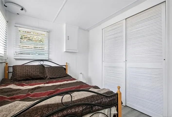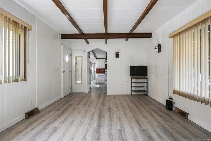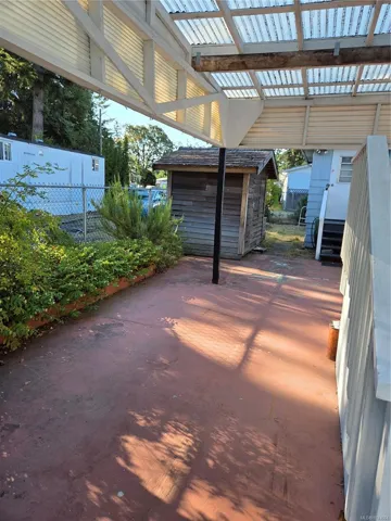 WHAT A HUGE LOT situated in this this 55 Plus park. Run by a well managed Park with new units added in 2025. This lot has plenty of opportunities to explore. A New roof (2020) new thermal windows (2024) new paint, in and out (2025). 2 TON HEAT PUMP in 2025 and new flooring and ceiling design. makes it ready to move in and enjoy. Partially fenced, HUGE covered porch. A big wooden storage shed. Two car parking with space for an RV plus plenty of visitor parking. Come and have a look and see for your self. What an opportunity to get into an AFFORDABLE modular home that is ready for you to move in with it’s den /office/ 3rd bedroom that was added on. Close to corner store, down town Langford, Fairway Market and plenty of stores in the Mall. A covered deck. AVAILABLE IMMEDIATELY. MORE UNITS recently added. Come and see for yourself. See supplements for construction permit for new units that were added this year. What a great buy. E VALUE says there are 55 units but new ones added.