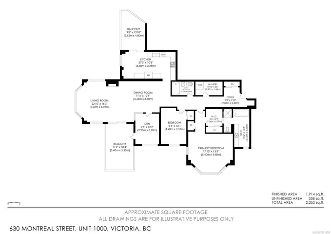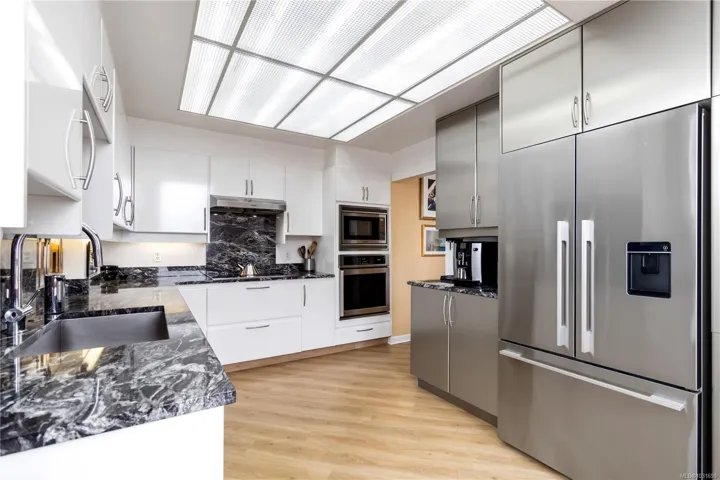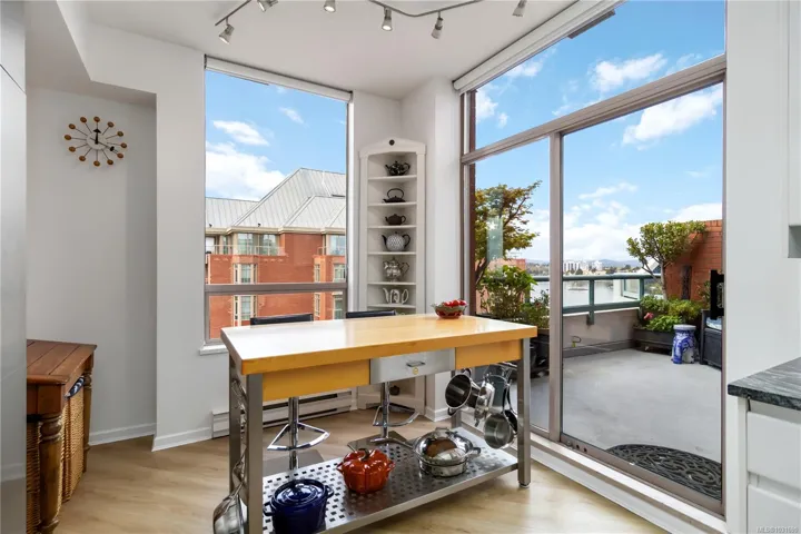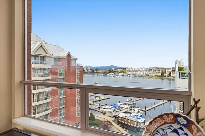Glorious south-west facing sub-penthouse w/ breathtaking views of the snow-capped Olympic Mountains, JDF Strait, & Inner Harbour w/ 2 PARKING spots (common prop). Offering just shy of 1,700sqft, this spacious 2-bed + den, 2 bath residence showcases panoramic vistas from nearly every room, w/ natural light pouring through expansive windows & 9’ ceilings enhancing the sense of space. Thoughtfully designed for both comfort & entertaining, the open-concept layout flows seamlessly onto 2 private decks—perfect for enjoying sunsets, watching the cruise ships come in, or seaplanes land right from the comfort of home. Lovingly cared for by the current owners, this home is in excellent condition & ready for its next chapter. This is a fantastic building w/ an active strata & community. A rare opportunity to own a premier waterside sub-penthouse combining space, views, & the Victoria lifestyle.