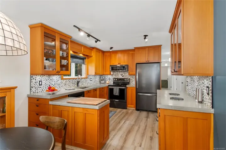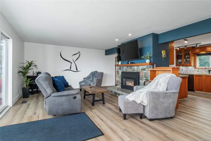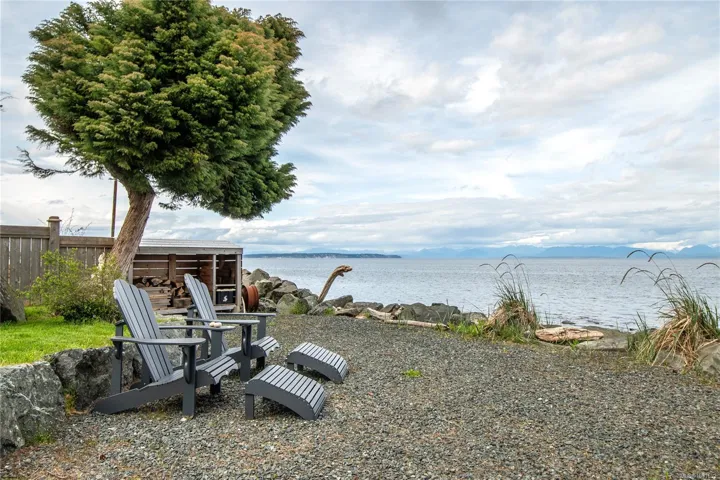 Rare ½-acre walk-on oceanfront property in Oyster Bay with stunning views of the mountains and nearby islands. This updated home offers a bright, coastal-inspired interior with fir kitchen cabinetry, newer appliances. New cascading patio door opens seamlessly to the oceanfront, while French doors off the dining area lead to a private hot tub. Enjoy true West Coast living—launch your kayak, watch abundant wildlife, and take in breathtaking sunrises and moonrises from your own backyard. Recent upgrades include new septic system (2021), windows, heat pump with A/C, flooring, and renovated bathroom with heated tile floor. The landscaped property features a firepit, irrigation, fenced area for pets or children and ample parking for vehicles, boat, and RV. A fully self-contained lower suite operates as a successful turnkey vacation rental, offering income potential or flexible living options. An oceanfront property that perfectly balances lifestyle, comfort, and investment potential.
