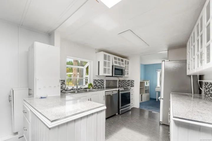 Welcome to one of the larger homes in sought-after Brinkworthy Estates (55+), offering 1,502 sq ft of bright, cheery living on a private corner lot. This spacious 3-bedroom, 2-bathroom home offers an inviting layout with an updated white kitchen with ample cupboard space and newer stainless steel appliances, generous living room featuring a cozy wood stove, sun room with hot tub, mud room, and tasteful upgrades throughout. A covered carport, greenhouse and workshop add to the great features here. Enjoy outdoor relaxation on the covered porch and patio area, surrounded by easy-care perennial landscaping and a rock and water installation. This friendly 55+ community offers great amenities including a clubhouse, fenced dog park, and community garden. Stroll the scenic trail into town and hop on the bus for the ride back. Comfort, convenience, and community, all in one ideal package!