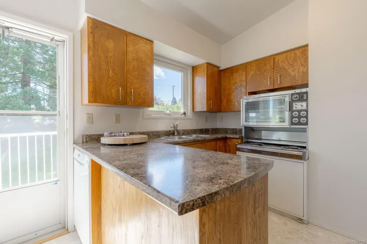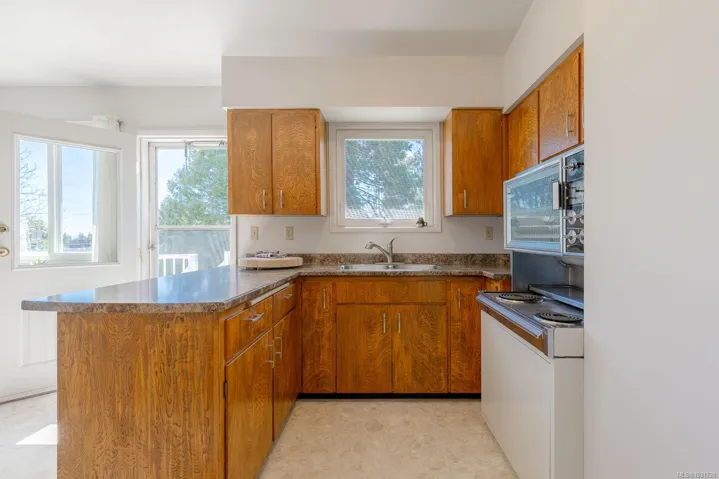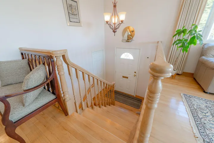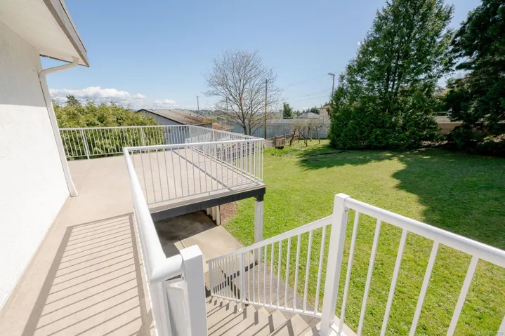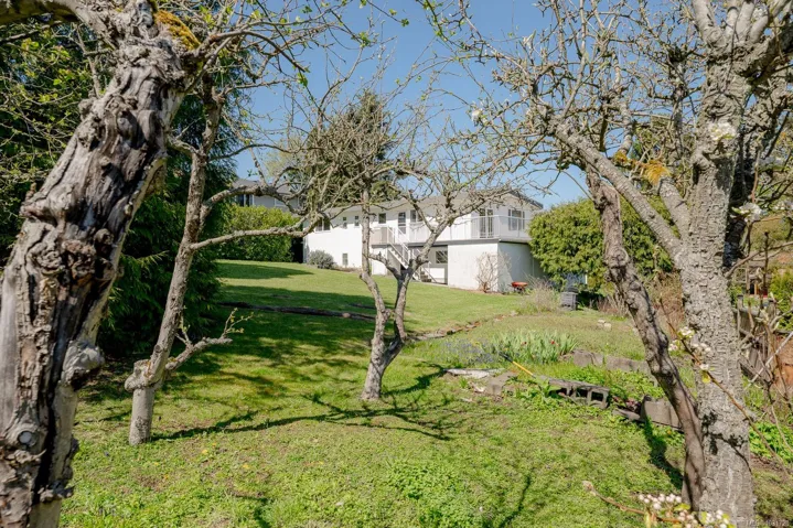 Welcome to this bright and beautifully maintained 5-bedroom, 2.5-bath family home, tucked away on a quiet dead-end road in a desirable neighbourhood. Ideally located within walking distance to an elementary school and local amenities, this property offers both convenience and privacy. Thoughtfully updated, features include a durable metal roof, efficient heat pump, upgraded hot water tank, and hardwood floors throughout. Enjoy outdoor living on the spacious wraparound deck overlooking a private backyard complete with five apple trees, two pear trees, and a side garden area. The easy-care landscaping makes this property perfect for busy families. With a flexible layout, this home is ideal for a growing family or potential suite for a mortgage helper—buyer to verify zoning (see attached).