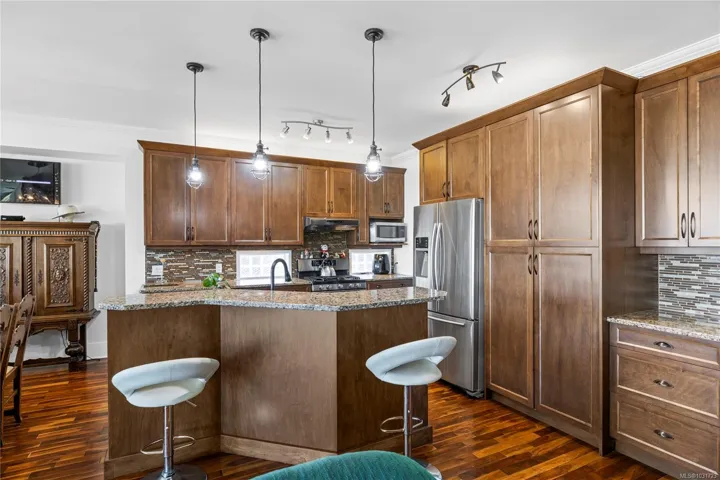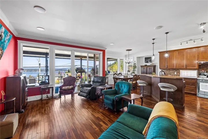 Located in sought-after Ladysmith, this spacious 5 bed + den, 3 bath home offers flexible living with beautiful ocean views and a versatile layout. The entry level main floor features 3 bedrooms and 2 bathrooms, including a bright primary suite with ocean views and an ensuite. The open concept kitchen, living, and dining area opens onto a large covered deck running the full length of the home, ideal for year-round enjoyment. Downstairs offers a well planned 2 bed + den, 1 bath legal suite with private main level entrance from the front of the home, making an excellent mortgage helper. The fully fenced private backyard includes an outdoor kitchen and access to the impressive 1,248 sq ft detached shop with space for up to 5 vehicles. A heat pump provides efficient comfort, and a Generac generator is wired into the home for added peace of mind. Data and measurements are approximate. Verify if important.
