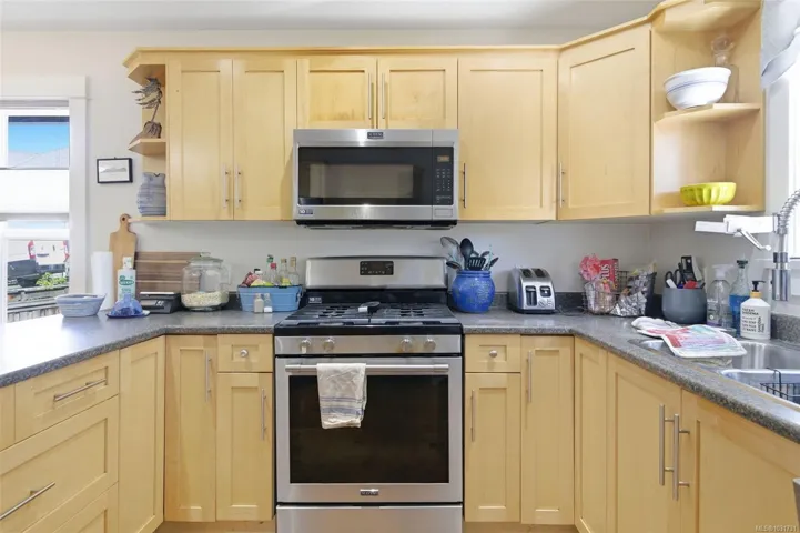 OH Sat Apr 18th, 1:30-3pm. The perfect blend of cozy comfort, style, and functionality. Situated in a desirable and family-friendly neighborhood. This 1,581 sq ft. residence features 3 bedrooms and 2.5 bathrooms, with an open-concept layout. The Main living area boasts large windows, a cozy fireplace, and seamless access to the dining space. Perfect for entertaining or relaxing with family. The primary bedroom suite is located on the main floor and features walk in closet and tastefully updated 3 piece bathroom with walk in shower. Upstairs features a full 4 piece bathroom and 2 more large bedrooms. The modern kitchen is equipped with nice appliances, ample cabinetry, and generous countertop space. Step outside to your private patio in your fully fenced backyard, ideal for outdoor gatherings, gardening, or simply enjoying the peaceful surroundings. Backyard oasis boasts fig tree, grape vines, kiwi, perennials & pergola. Near schools, shopping, transit, parks.