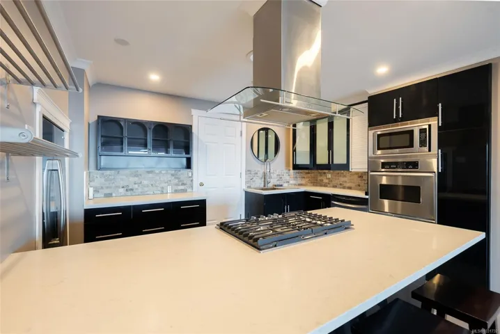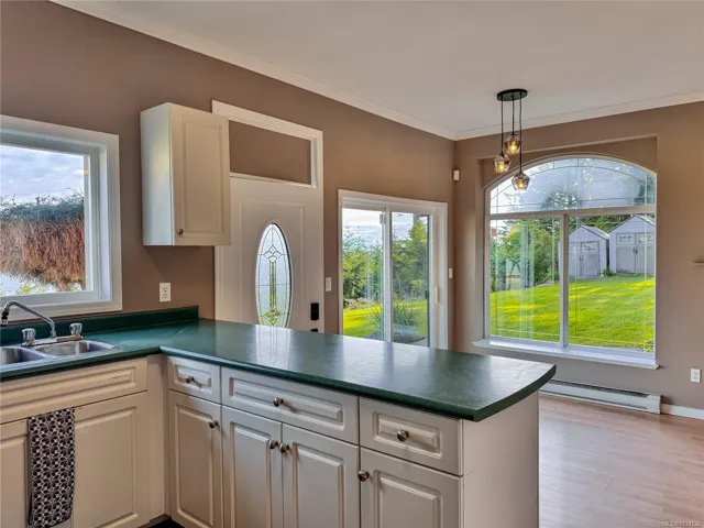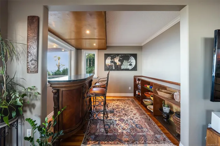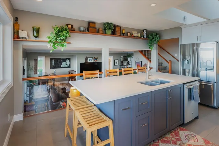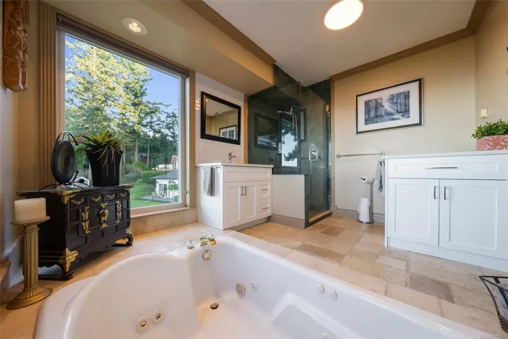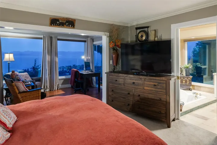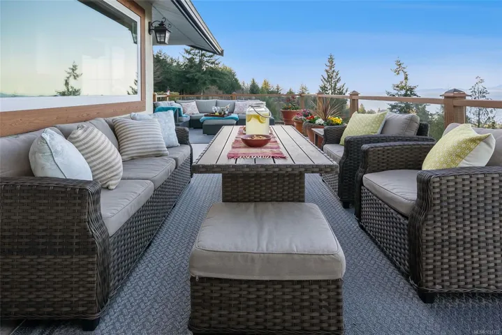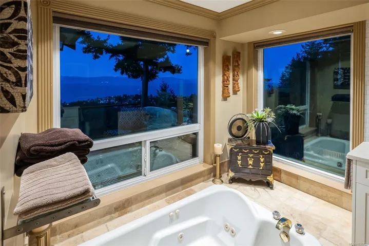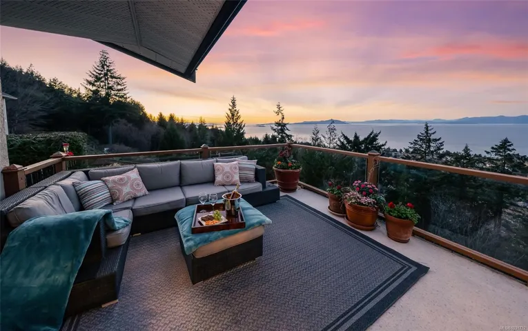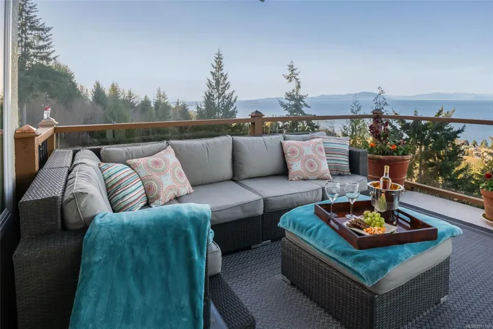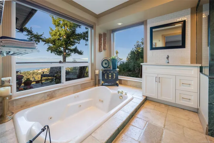 Perched on 1.18 acres with fabulous ocean and mountain views, this exceptional estate offers over 5,500 sq.ft. of living space. The beautifully renovated 4,281 sq.ft main residence is a stunning 3-bedroom upper-level home, with a private studio suite and a separate 2-bedroom suite that can easily be reintegrated into the main living area. Quality finishes throughout include hardwood flooring and expansive windows that frame the spectacular coastal scenery, while the spa-inspired primary suite invites relaxation with its sunken double Jacuzzi tub. The self contained 1,235 sq.ft. guest house with kitchen, full bath, 2 bedrooms, and generous living space is ideal for extended family or guests. Multiple decks provide great views and the private fenced yard and fire pit offer a peaceful retreat. With ample off-street parking, a carport, garage space for all your vehicles and toys, as well as development potential, this is a rare chance to own a remarkable view property in North Nanaimo.
