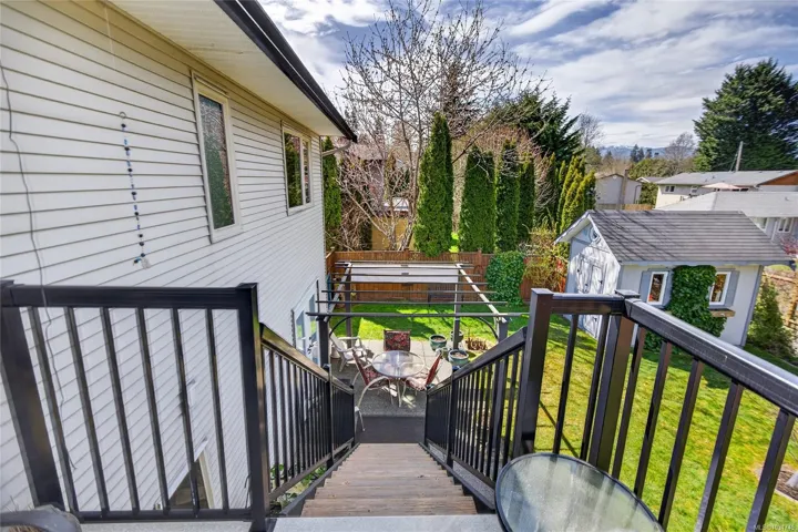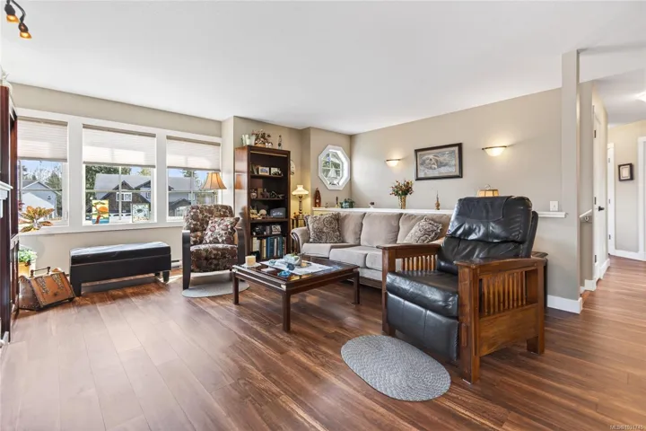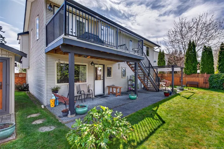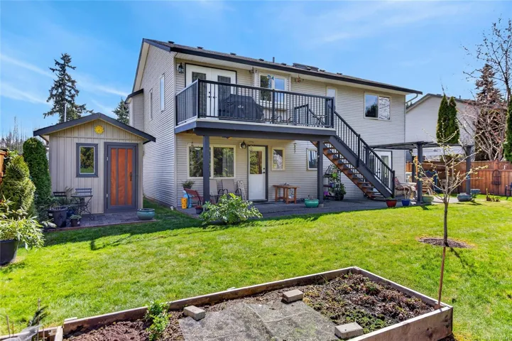 Tucked away on a quiet cul-de-sac in Courtenay City, this well-cared-for 1,894 sq ft split-level home offers comfort & versatility. Built in 2008, it features 4 bedrooms, 3 bathrooms, plus a den/office, ideal for families or working from home. Slate flooring enhances the entry & bathrooms, while the bright living area includes a natural gas fireplace. The lower level offers a rec room with wet bar, bedroom & bathroom offering suite potential. Outside enjoy a private, fully fenced 0.16 acre yard with plenty of sun exposure, mature evergreens, raised garden beds, two sheds, a patio & a deck with mountain views. Double garage providing plenty of storage space plus extra parking area for the RV, boat or other toys. The subdivision has underground services. The home is situated across from a community park with a children’s playground. Just steps to a walking trail. Less than a ten minutes walk to amenities including the mall, grocery store, liquor store, restaurants & movie theatre.
