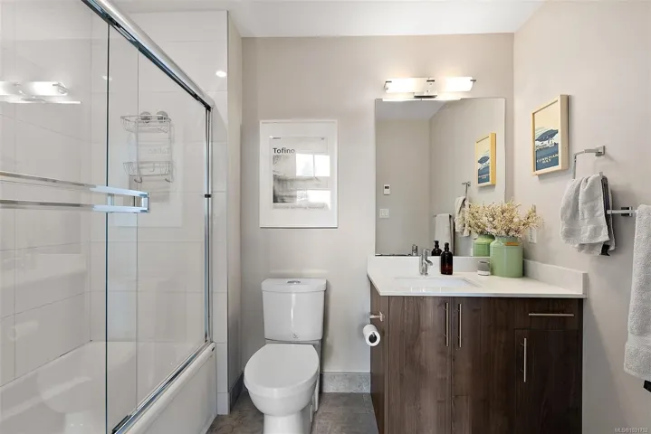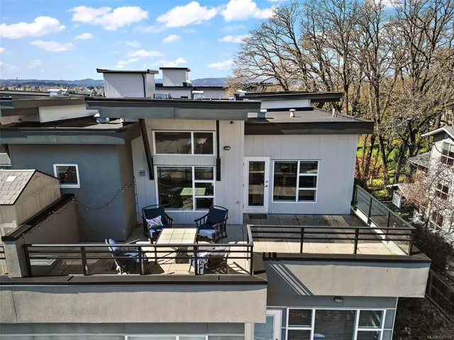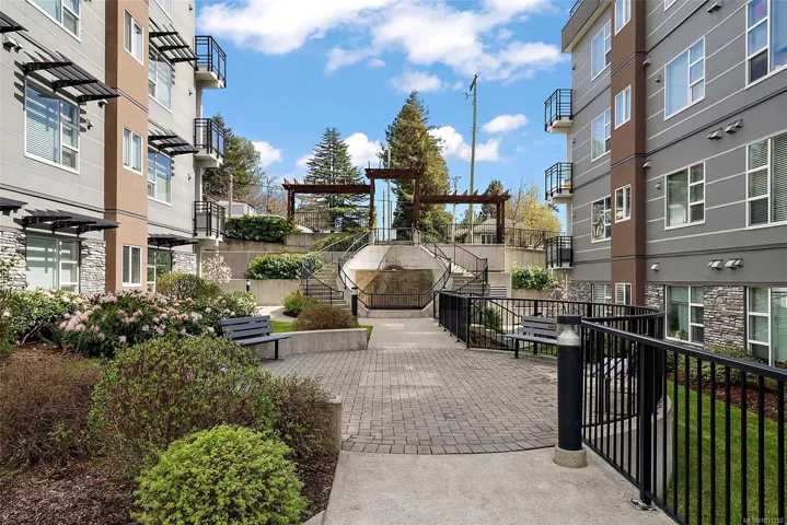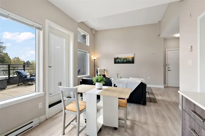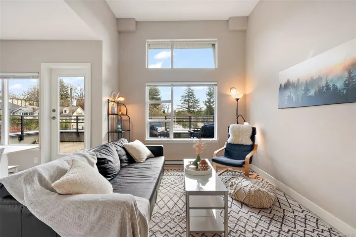 Soak up the sun on your oversized private balcony—this top-floor corner unit offers bright, modern living in a fantastic central location. This 1 bed, 1 bath home features an open-concept layout with vaulted ceilings, quartz countertops, stainless steel appliances, and quality finishes throughout. Enjoy in-floor heating in the bathroom and the convenience of in-suite laundry. Includes secure underground parking, storage locker, and no size restrictions for pets. Ideal for first-time buyers, downsizers, or a smart investment for a university student. Walk to parks, shopping including Mayfair Shopping Centre, groceries, and transit, and just minutes to downtown Victoria. Open house- Sat 12-1:30/Sun 11-1