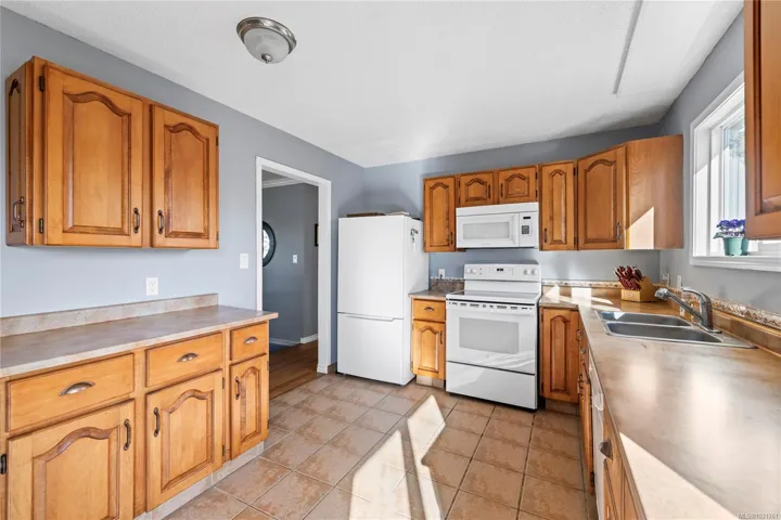 Welcome to this well-located home in the heart of Ladysmith. With three bedrooms and two bathrooms, this home provides a practical two-level layout ideal for families or those seeking extra space. The bright main living area features a spacious kitchen with access to a sunny deck, perfect for relaxing or entertaining. Downstairs, a generous family room with French doors opens to a large backyard, offering plenty of room for kids, pets, or gardening. The garage provides excellent storage and there is ample parking for vehicles or recreational toys. Located close to all levels of schools, the rec center, downtown, and shopping, and within walking distance to Kinsmen Park and nearby trails, this home offers comfort, convenience, and great value.
