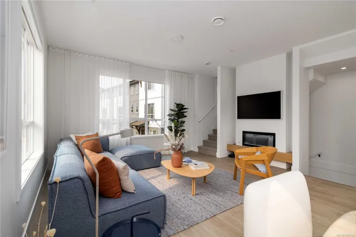 Exceptional Shoreline plan offers 1,475 sq. ft. of thoughtfully designed living space across 3 levels. Elegant designer interiors, the open-concept main floor features 9′ ceilings, gourmet kitchen with modern appliances, engineered stone countertops, two-tone cabinetry, & matte black hardware, flowing seamlessly to a generous dining area, living rm, & large private balcony. Upper hosts 3 bedrooms including a serene primary suite with walk-in closet & frameless glass ensuite. Lower level flex rm offers ideal space for an office, gym, or guest rm alongside a built-in garage. Premium finishes throughout include luxury vinyl plank flooring, large-format tiled bathrooms, & ductless heat pump. Professionally landscaped yard with private patio, wood fencing, & personal entry gate. Steps to Royal Bay’s ample amenities, parks, and the oceanfront. Visit the HomeStore at 394 Tradewinds Ave, Sat to Thurs 12–4 pm. Price is plus GST; measurements are approximate. Photos are of a similar show home.