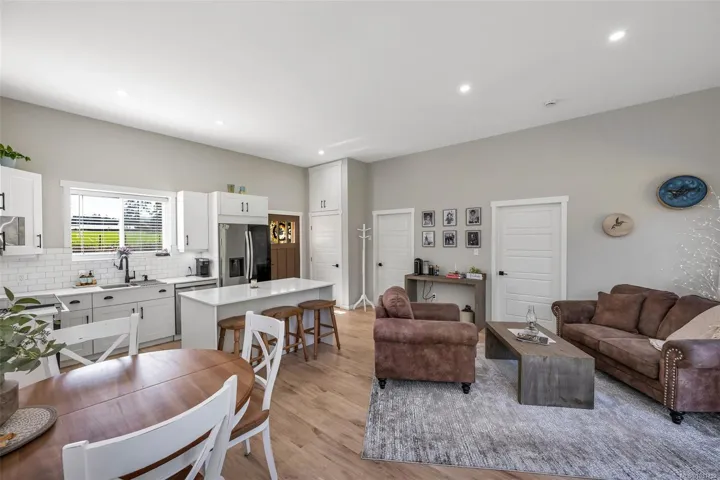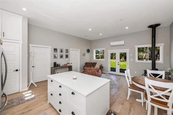 In an area of lush, pastoral farmland, you will find this beautifully renovated, 3 bedroom, 2 bathroom rancher on a level, partially fenced 3.5 acres with paddocks for goats/sheep, chicken coop, a good producing well (12gpm) drilled in 2022, lots of garden space, wood storage & endless potential! The gorgeous house is bright & airy with 10’6″ ceilings & has been tastefully updated. The kitchen has ample cabinets, a center island with eating bar, stainless appliances & quartz countertops. The open design living space features a wood stove, is great for entertaining & it accesses the very private 435 sqft., back patio overlooking the property. The 3 bedrooms are generous including the spacious primary with a large walk-in closet & very nice 3 piece ensuite bathroom. There is plenty of parking, apple, plum, cherry & crabapple trees, & potential to clear more property at the back & potentially have a pond (buyers to verify). Zoned A-1 & in the ALR, this versatile property is a must see!