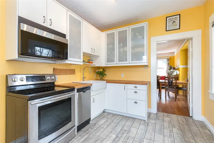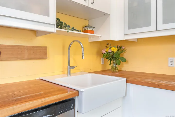This adorable 3-bedroom Arts and Crafts cottage is tucked away at the end of a quiet lane in the sought-after Marigold neighbourhood. Inside, you’ll find a character-filled space featuring original fir flooring, a country kitchen with farmhouse sink, and the warmth and comfort of a cozy woodstove, newer vinyl windows and recently blown-in insulation. Two bright bedrooms occupy the main floor, while the upstairs serves as a private third bedroom complete with its own south-facing covered balcony.