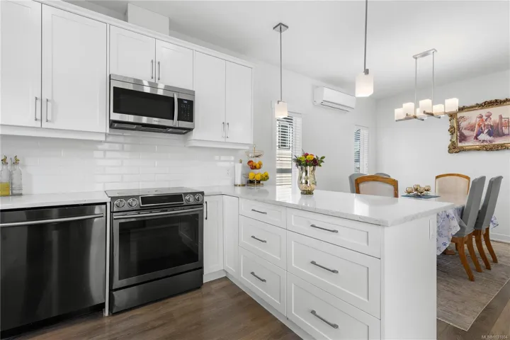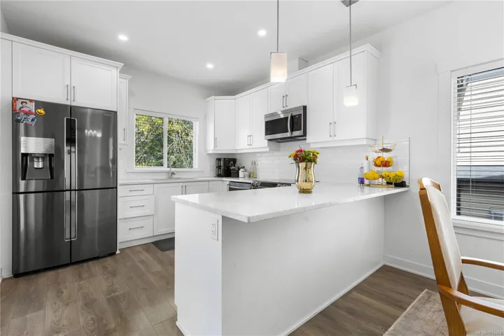 Bright, beautifully maintained 2018-built home in the heart of Happy Valley offering 5 bedrooms, 4 bathrooms, and approximately 2300 sq.ft. of finished living space. The main level features an open-concept layout with spacious living and dining areas, quartz countertops, modern appliances, and access to a sunny rear deck. Upstairs offers 3 generous bedrooms, including a well-appointed primary suite. The lower level includes a self-contained legal 2-bedroom suite with separate entrance, ideal for extended family or mortgage helper. The fenced backyard is perfect for families with kids or pets. Located close to parks, schools, bus routes, lakes, and the Galloping Goose, this is a fantastic opportunity to own a versatile family home in a sought-after Langford neighbourhood.