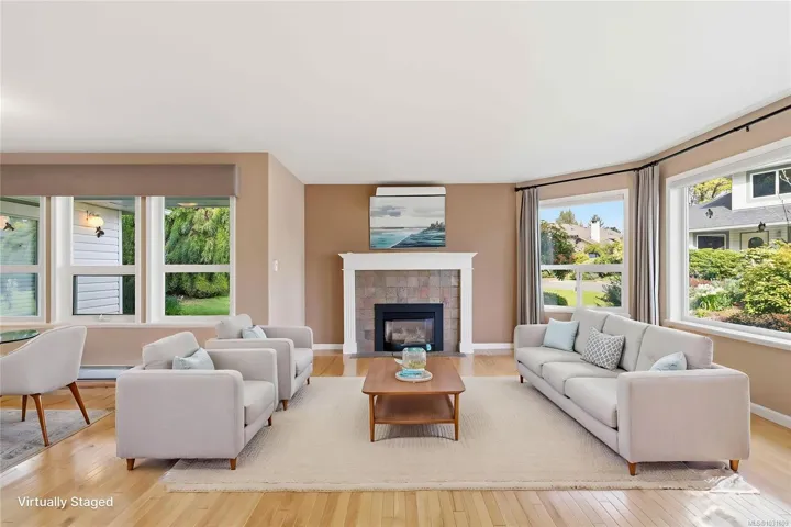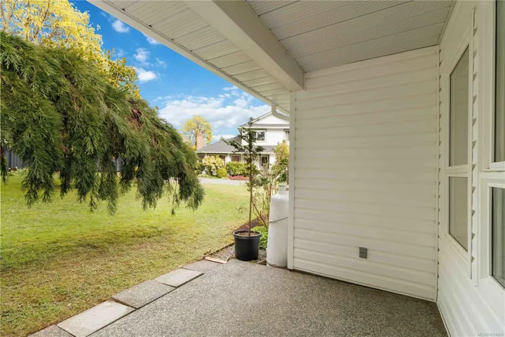 Bright, spacious, beautifully updated & all on one level! A rare opportunity to purchase this move-in-ready 2 bed, 2 bath, 1286sf, end unit townhouse in the desirable & intimate 5 unit Webster Court development. Conveniently located a short stroll to Saanichton Village Centre w/shopping, restaurants, grocery, pharmacy, transit as well a parks & trails all near by. Step thru the front door & be impressed w/the open floor plan & gleaming oak floors awash in light thru picture windows. Updated kitchen w/granite counters, dual sinks & stainless steel appliances. Inline eating area opens thru a French door to the covered patio. Generous living room w/bay window & cozy fireplace. Large dining area is perfect for family dinners. Updated 4pc main bathroom & 2 spacious bedrooms including the primary bedroom w/updated ensuite boasting 2 sinks & walk-in shower w/seat. Laundry room, attached garage, 1 adjacent parking spot & private backyard (LCP) Bonus: heat pump for efficient heating & cooling!