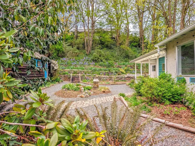 Welcome to your private escape, perfectly tucked away on a lush .26-acre parcel just steps from Duncan’s historic downtown core. The property unfolds into a stunning garden courtyard nestled between the home and the workshop, providing a secluded sanctuary for morning coffee or outdoor dining. The yard rises into a dramatically terraced slope where towering maples create a magnificent natural canopy of privacy and shade.
