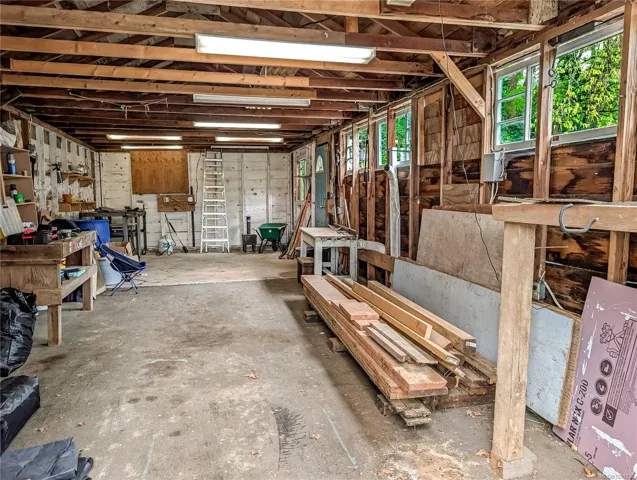 Inside, this 3-bedroom, 1-bath home blends timeless character with modern efficiency, featuring hardwood floors and a new heat pump installed in 2024 for year-round comfort. The detached garage offers flexibility as a workshop or creative studio, while the fenced yard provides plenty of space for kids and pets to roam among an established garden with blooming flowers, berry bushes, and mature ferns.