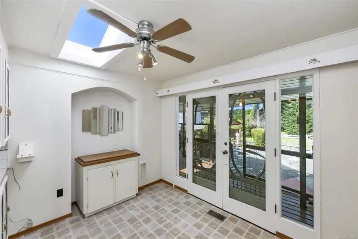 A tremendously charming 2-bed rancher set on a bright, fully usable ¼-acre lot in a quiet and convenient Colwood neighborhood. This character-filled home offers warm living spaces, hardwood floors under the carpet, bay-style windows, and an inviting dining area with French doors opening to a 250sqft covered deck.