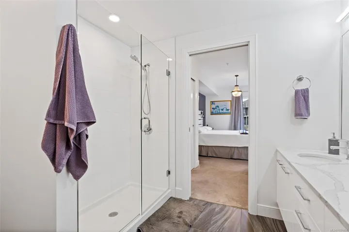 Welcome to Unit 301 in Lakepoint One. This well-designed 2 bed/2 bath home offers over 1,100 sq ft of living space with bedrooms on opposite sides for added privacy, a dedicated laundry room, and a 372 sq ft deck that’s ideal for entertaining or unwinding after a long day. The primary bedroom features a walk-through closet leading to the ensuite with double sinks and a large walk-in shower, while the second bedroom includes its own walk-in closet. The kitchen offers quartz countertops, stainless steel appliances, and generous prep space with a functional layout between the island and stove. Head upstairs and you’ll find the rooftop patio equipped with shared bbq and loungers and enjoy the unobstructed views of Langford Lake. On top of all of this, it also includes kayak storage, car wash, and dog washing station! Located across from the YMCA and public library, and minutes to Westshore Town Centre and Belmont Market—call today!