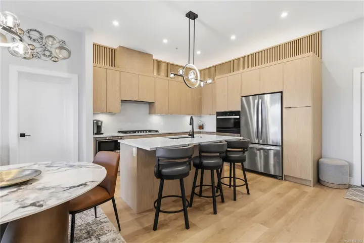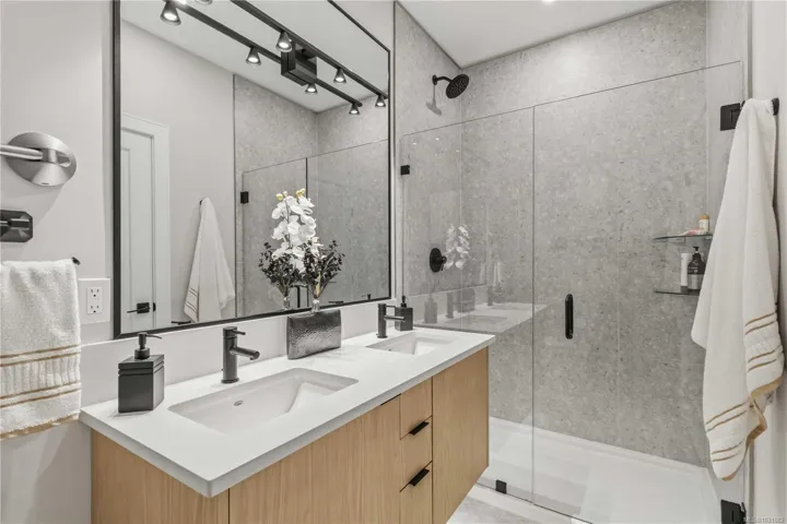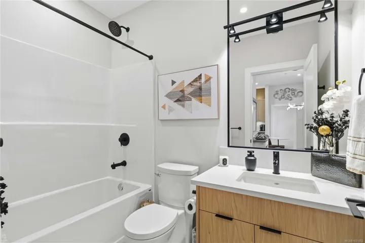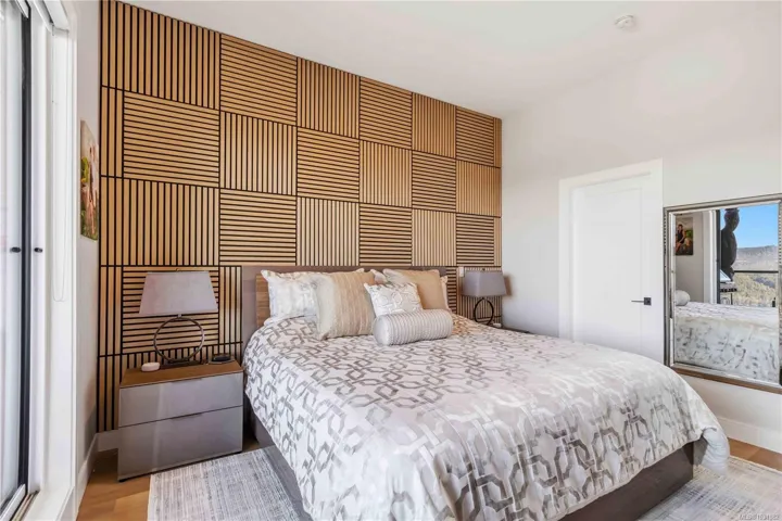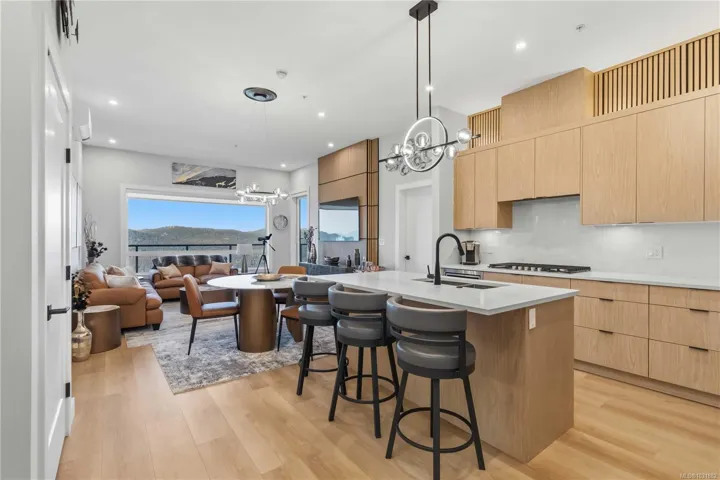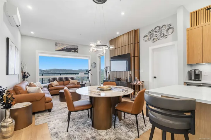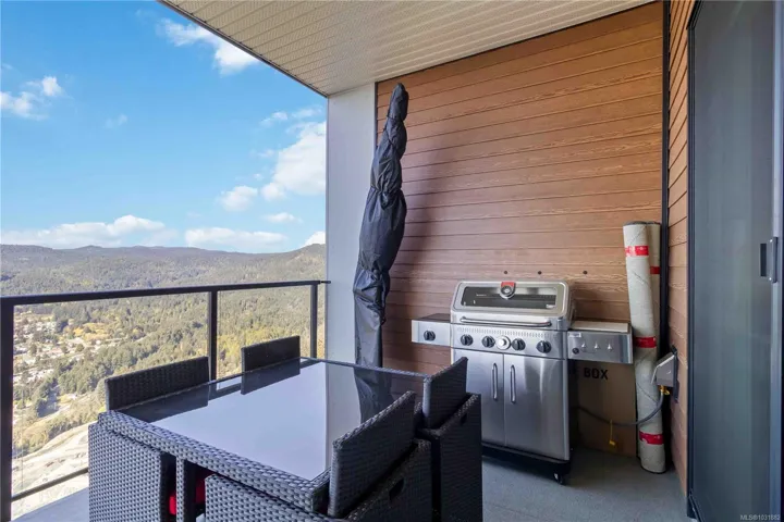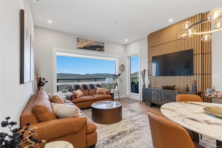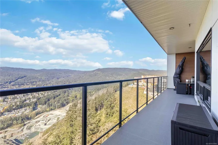 Beautiful TOP FLOOR, 2 bed, 2 bath+den home offering approx. 1,123 sf of thoughtfully designed living space with stunning ocean, mountain & lake views you won’t find anywhere else! Located on stunning Bear Mountain, this home features refined finishes and a big patio with NG BBQ outlet. Entering the unit you’ll instantly notice the stunning view, 10′ ceilings and large open concept living space with beautiful custom wood paneling drawing your eyes to the living room feature wall, this unit also boasts upgraded lighting & ceiling fans, and UV protective window film, and a den with custom cabinetry & countertops, both bedrooms also include additional closet organizers. The kitchen is equipped with a Whirlpool appliance package, gas range, wall oven, and garbage disposal. Comfort is ensured with two ductless heat pumps. Includes 2 secure underground parking spots, & 1 storage cage. Building amenities:gym,community garden, dog wash. Close to 2 championship golf courses, trails & shopping.