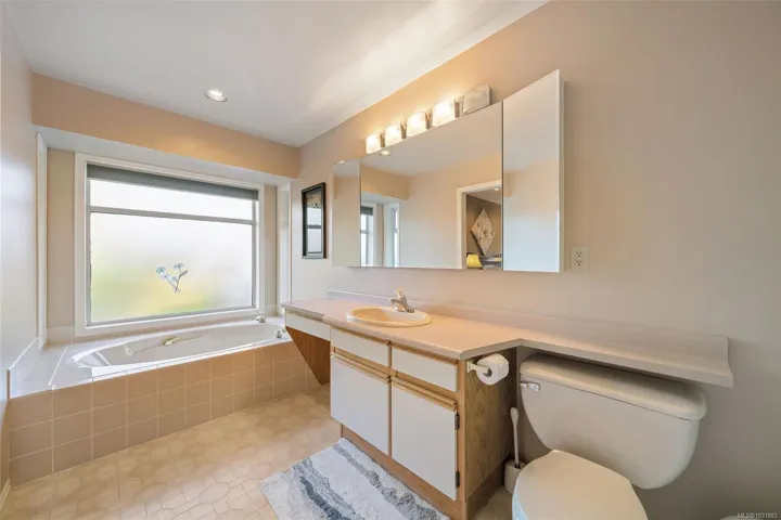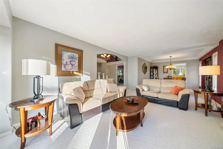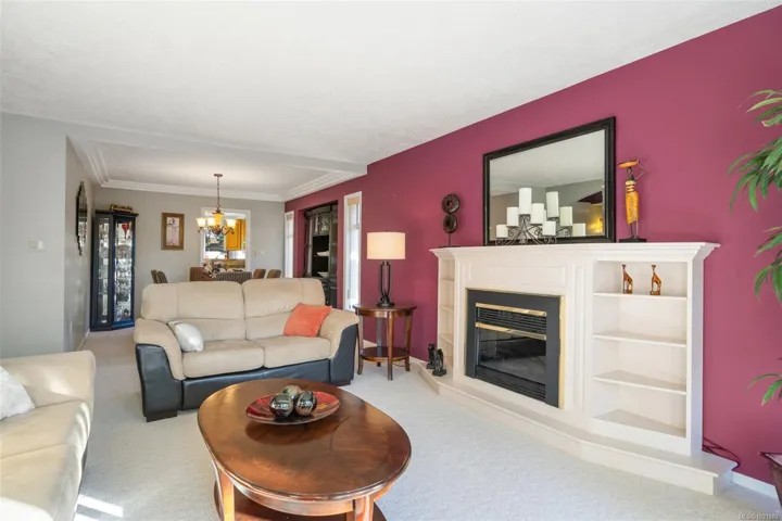 Welcome to this exceptional Tanner Ridge residence, ideally positioned on a sun-drenched ½ acre lot in a quiet cul-de-sac. Offering 3 bedrooms and 3 bathrooms, this home is thoughtfully designed for comfortable main-level living, highlighted by a spacious primary bedroom on the main floor complete with its own ensuite. The main level also features elegant formal living and dining rooms, a bright kitchen with an eating area, and a welcoming family room with doors that open to the private, landscaped, south-facing backyard—perfect for entertaining and enjoying all-day sunshine. Upstairs, a bonus bedroom and full bathroom provide excellent flexibility for guests, extended family, or a private retreat. Generous room sizes throughout offer plenty of space for both everyday living and special gatherings. Double garage & lots of parking for the toys. Enjoy a convenient commute to downtown Victoria, easy access to Keating Shopping Centre, & close proximity to Island View Beach & local parks.