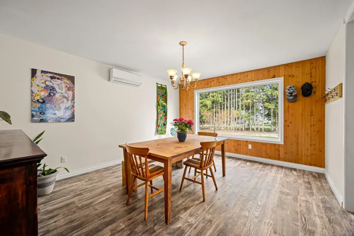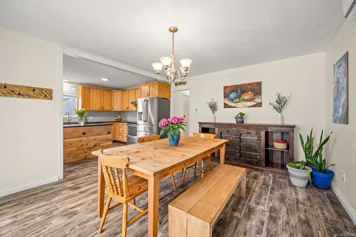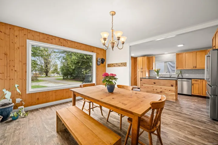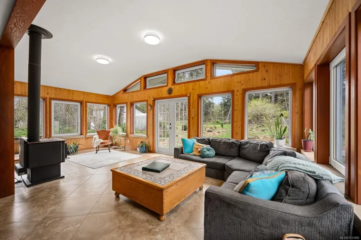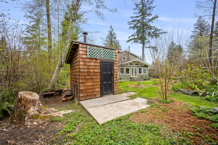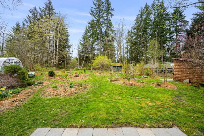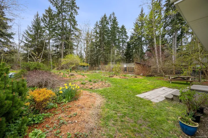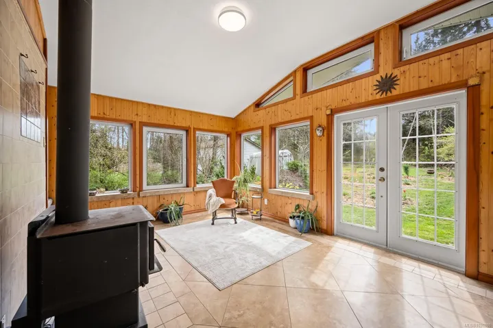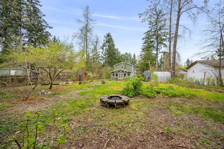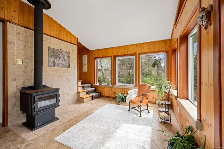 The 4 bed, 2 bath home sits on a 0.58 acre lot, with a fully fenced backyard, detached sauna, gardens, and room for your outdoor projects. The south-facing living room has incredible natural lighting with 14 windows! …plus a vaulted ceiling, tile flooring, a woodstove and french doors that open onto the lush backyard. The recently remodelled kitchen features wooden cabinets, quartz countertops and is open to the spacious dining area. Recent updates include a heat pump, new roof, flooring, kitchen and hot water tank. With 2 beds on the main and 2 beds on the upper floor it has a versatile layout.