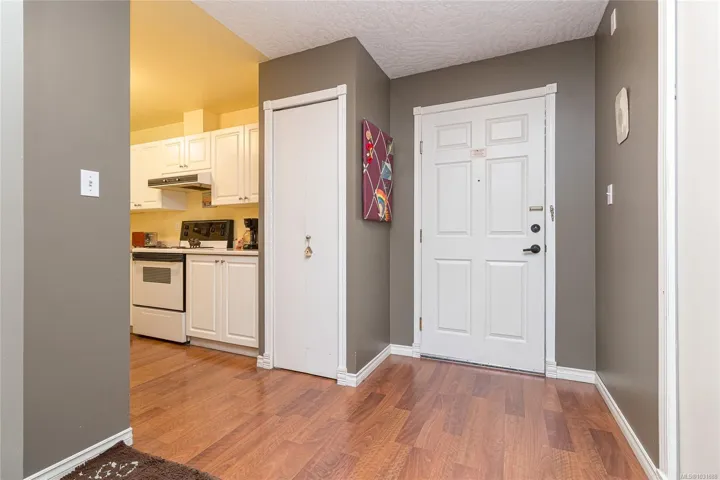 Affordability and Convenience. This west facing, two bedroom condo is centrally located and within easy commuting distance of everything that is important and spectacular in Victoria! Dark, rich, wood-like laminate flooring throughout, gas fireplace, in-suite laundry and a covered balcony for year-round use. You will appreciate new windows and patio doors, the problem free Rheem double hulled hot water tank and your puppy will love the enclosed exterior dog run area. This unit is also one of the few in the building that offers two secure parking stalls.