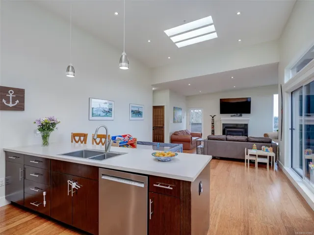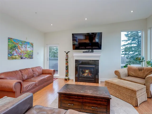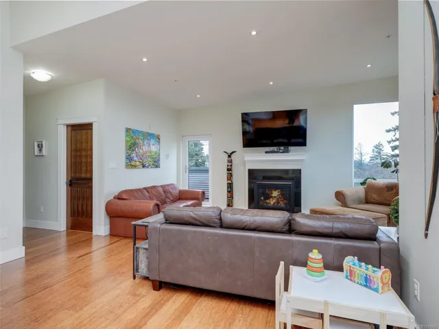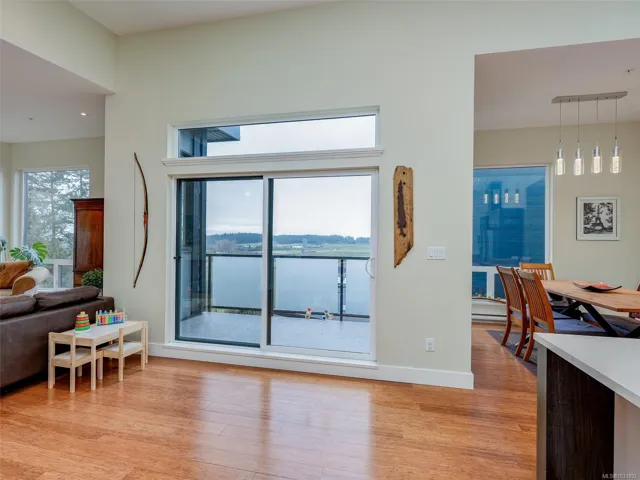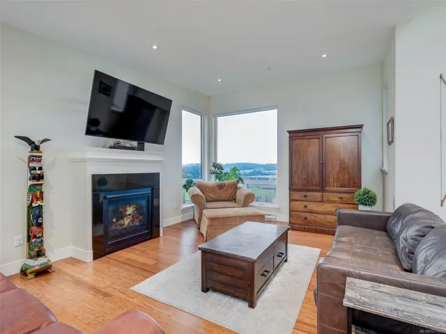 Welcome to this beautifully appointed Penthouse with sweeping Views over the Valley and beyond!This unique home was created in the Island View Ridge Estates,a planned community of Strata Homes and Commercial Suites.This well appointed homes offers an Open Living plan,,beautiful wood flooring and Vaulted ceilings(3 Skylights).The Kitchen offers high end SS appliances,eating bar with separate Dining room for entertaining!The Great room has two spacious areas for living to enjoy,Gas FP ,access out to smaller of Two Terraces to enjoy year round.The large Primary has Custom Built-ins a,spacious en-suite and private access to Wrap around Terrace to enjoy your morning Latte.Second bedroom also accesses terrace.The Flex room has a private entrance and would make a perfect home office,gym or Guest sleeping area.This is a very special home, well situated to beaches,shopping and minutes to Victoria.Please call for further information.