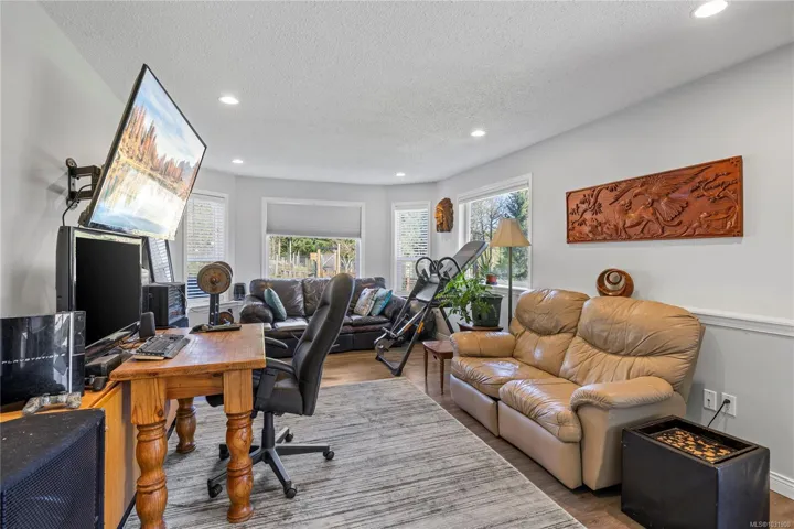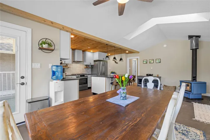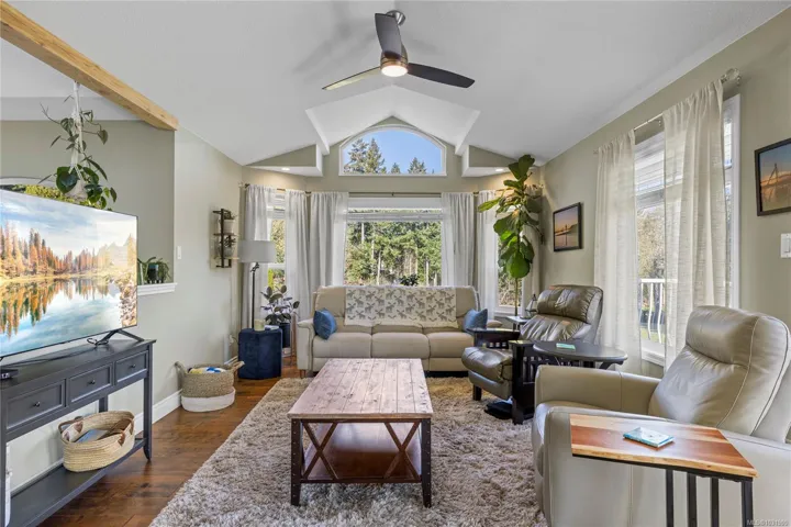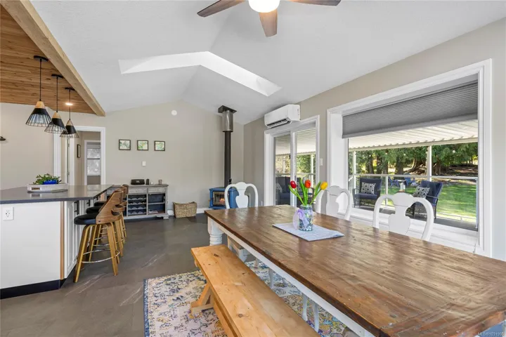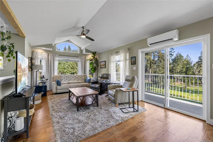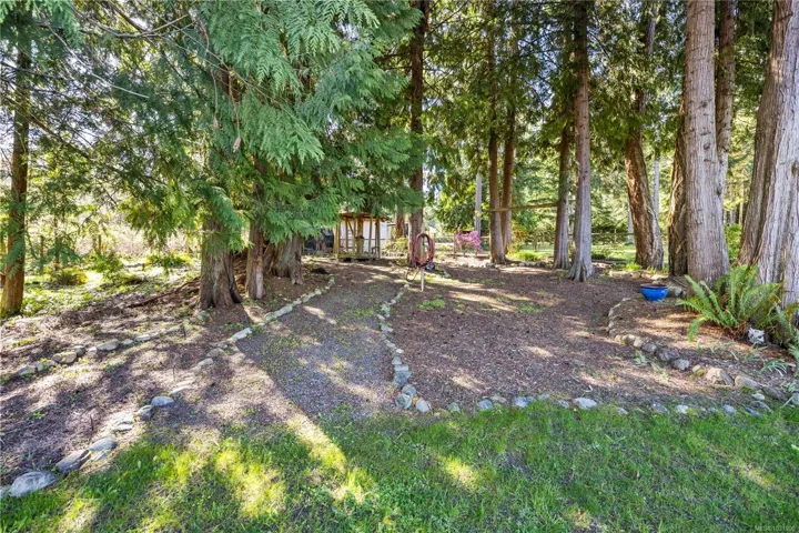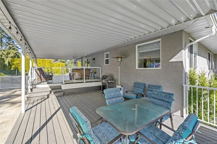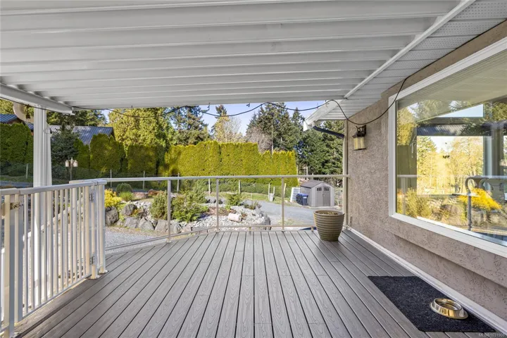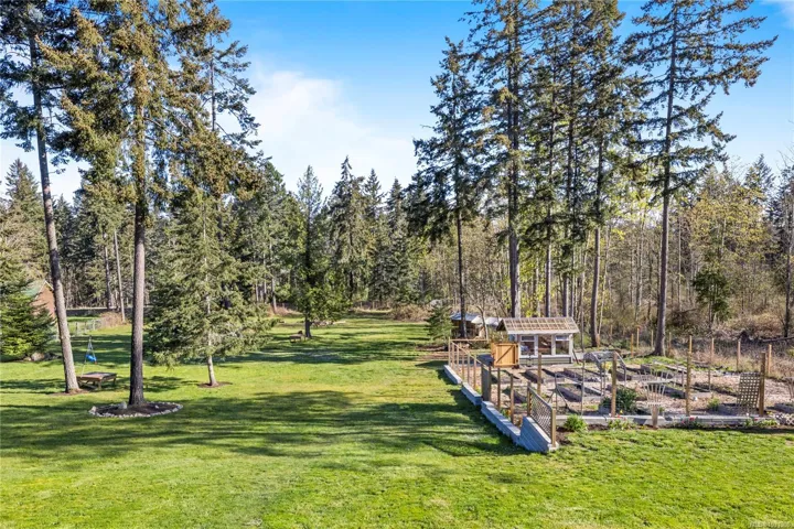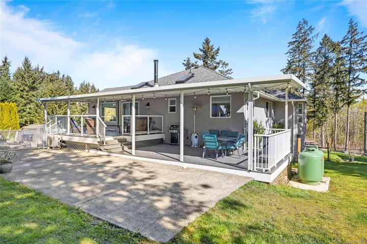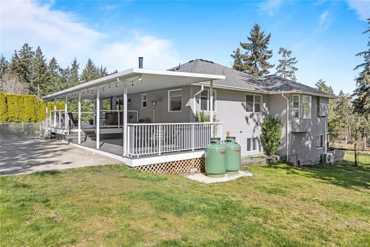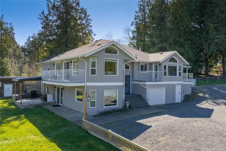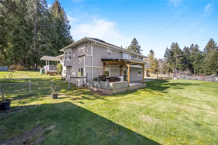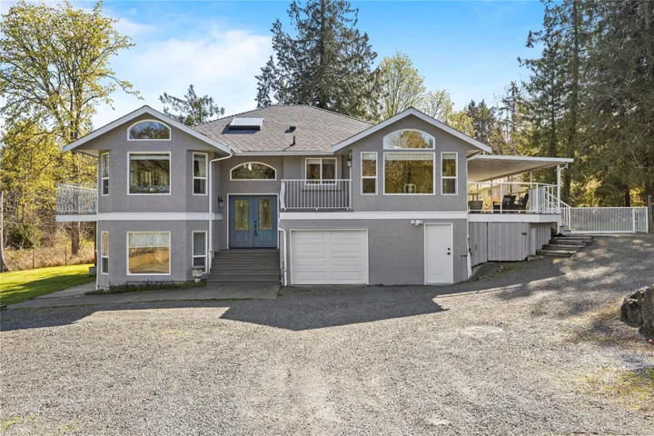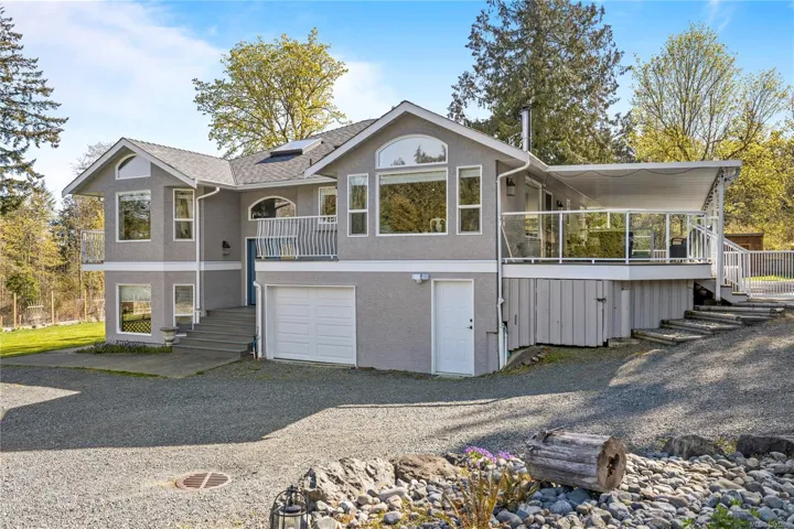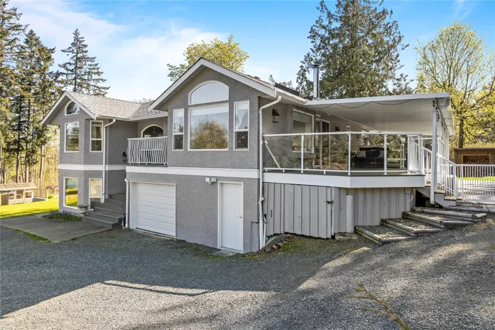 Set on a pristine 2.3-acre fully fenced and usable property, this beautifully renovated home offers exceptional outdoor living and versatility. The expansive grounds feature garden areas, fruit trees, a greenhouse, wood shed, storage shed, and plenty of parking, with gated access at the rear for walking. A large covered deck extends your living space outdoors, perfect for relaxing or entertaining. Inside, the updated gourmet kitchen boasts abundant white cabinetry, quartz countertops, stainless appliances and custom wood ceiling details, opening to the dining and family rooms. The main level offers three bedrooms including a spacious primary with a renovated four-piece ensuite and walk-in closet. A bright two-bedroom suite below includes a separate entrance and its own laundry. Added features include cork flooring, ductless heat pumps and many windows for natural light. For further details see the feature sheet. All data and measurements are approx and must be verified if fundamental.