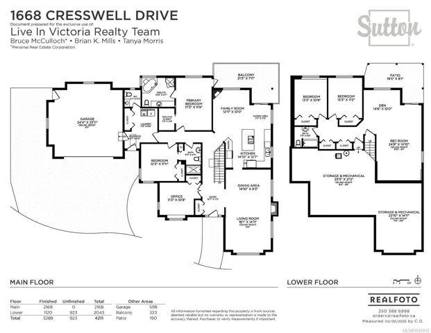 1668 Cresswell sits on a private corner lot at the top of Cresswell Drive, offering views of the Haro Strait and proximity to a network of wooded walking trails. Built in 2002, this custom built 3,288sf, 4 bed, 4 bath home features French doors, curved archways, skylights and expansive windows that fill the space with natural light. The main level features a formal living and dining area with gas fireplace, kitchen with an island, built- in S/S/ appliances, pantry, eating area and family room opening to the balcony. The primary suite offers a walk in closet complete with built in organization, a spacious 4pc ensuite with soaker tub and walk in shower. Also on the main level you’ll find a mudroom off the garage, laundry and powder room. The lower level provides a spacious rec room plumbed for a wet bar or kitchenette, sitting area, two additional beds, a 4pc bath, ample storage space and opens onto a covered patio amid the beautifully landscaped gardens. Proudly offered at $1,795,000.
