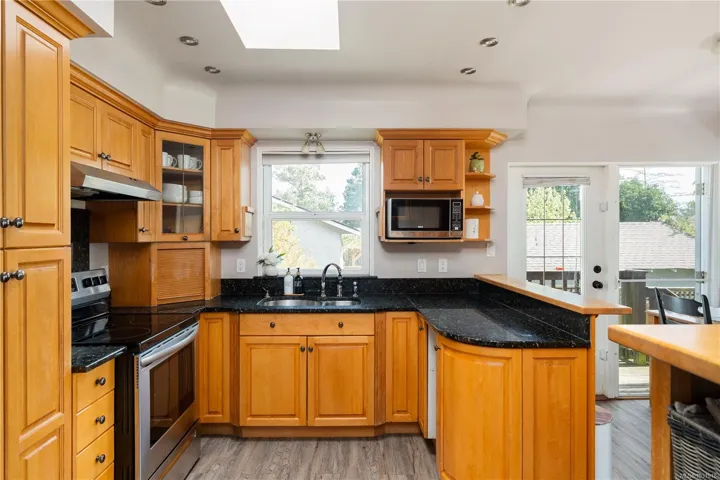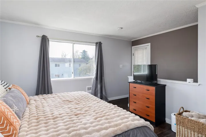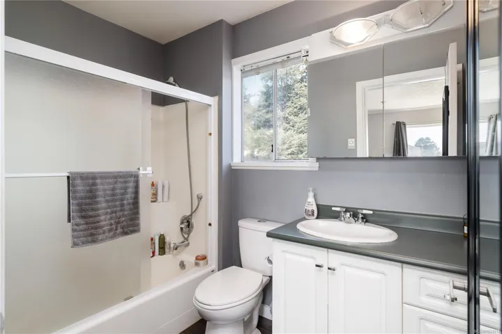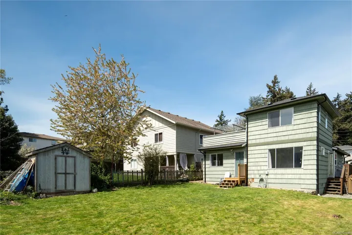 **Open House Sat. Apr 25th, 1pm to 230pm & Sun 11am to 1230pm** Welcome to this charming, well maintained home in the central Glanford neighbourhood of Saanich, perfectly positioned between the Trans Canada and Pat Bay Highways for easy access in every direction. Offering an ideal blend of comfort and functionality, this home features a stunning backyard, updated flooring along with a new roof and gutters completed in 2024, providing peace of mind for years to come. The main level features a spacious front family room with a cozy gas fireplace, while the back of the home opens to a bright living and dining area and functional kitchen overlooking the sunny backyard. Two bedrooms, a full bath, and laundry complete this level. Upstairs, the private primary retreat offers an ensuite, walk in closet, and rooftop deck to enjoy evening sun. Set on a flat, fully fenced lot ideal for kids, pets, and entertaining, all close to parks, schools, and shopping.