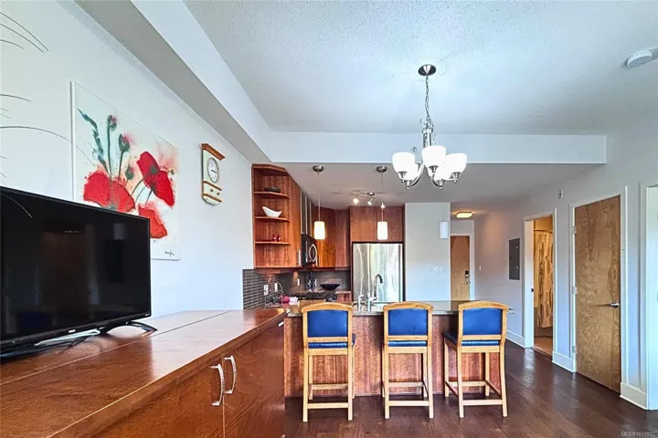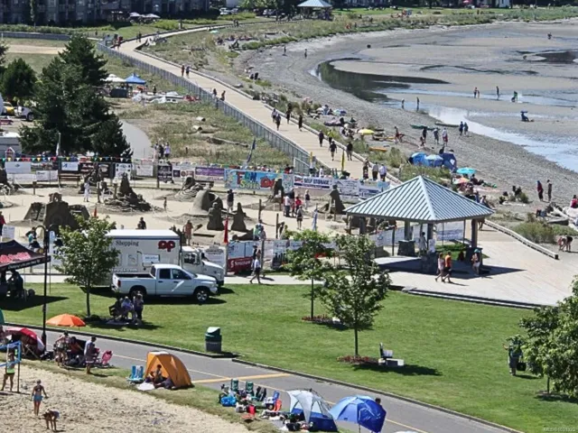 Beachside living at The Beach Club Residences! Just steps from Parksville’s sandy beach and scenic boardwalk, this beautifully maintained full ownership 1 bed, 1 bath condo offers 613 sq ft of stylish, easy living. The bright open layout features 9-ft ceilings, engineered hardwood floors, a cozy gas fireplace, and oversized sliding glass doors opening to a spacious private patio with privacy screen, city views, and gas BBQ hookup—perfect for relaxing and enjoying the ocean air. The kitchen is well appointed with granite countertops, stainless appliances, generous cabinetry, and a large eating bar ideal for casual dining and entertaining. The generous primary bedroom includes a compact walk-in closet, while the bath offers a tub/shower combination. In-suite laundry, secure underground parking, and storage add everyday ease. Concrete and steel construction with indoor pool, hot tub, sauna, and fitness centre. Walk to shops, cafés, restaurants, the boardwalk, and beach. Meas. approx.