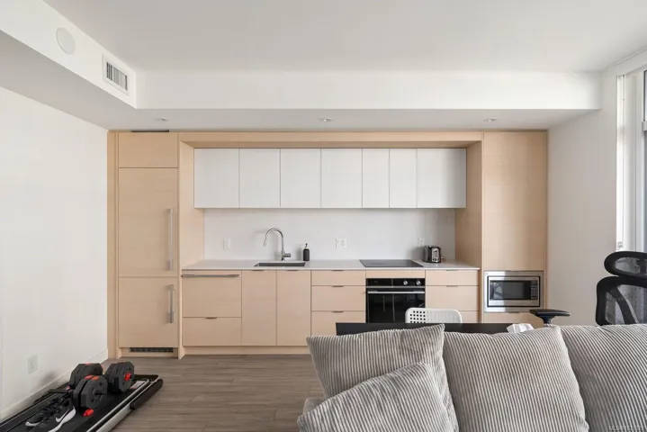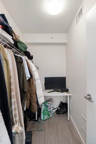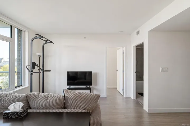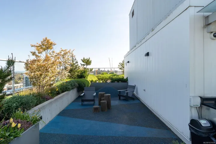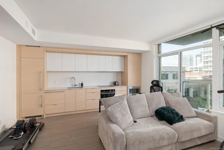 Experience modern urban living at Yates on Yates by Chard Developments. This beautifully designed home offers an open concept kitchen & living area, a spacious bedroom with a walk-in closet & a quiet patio overlooking greenspace, all in the heart of downtown Victoria. The kitchen features premium integrated appliances, an induction cooktop, built-in fridge & freezer, drawer-style dishwasher & soft-close cabinetry. Finishes include quartz countertops, wide plank flooring & a light color palette that complements any décor. Enjoy year-round comfort with air heating and cooling, plus heated bathroom floors for cozy mornings. Residents have access to a rooftop terrace with BBQs, a community garden, play area, and dog run with panoramic city views. Step outside and discover everything downtown Victoria offers, from shops & restaurants to gyms, cafés, bakeries, theatres & transit nearby. Enjoy the convenience of a vibrant downtown lifestyle with everything you need just steps from your door.
