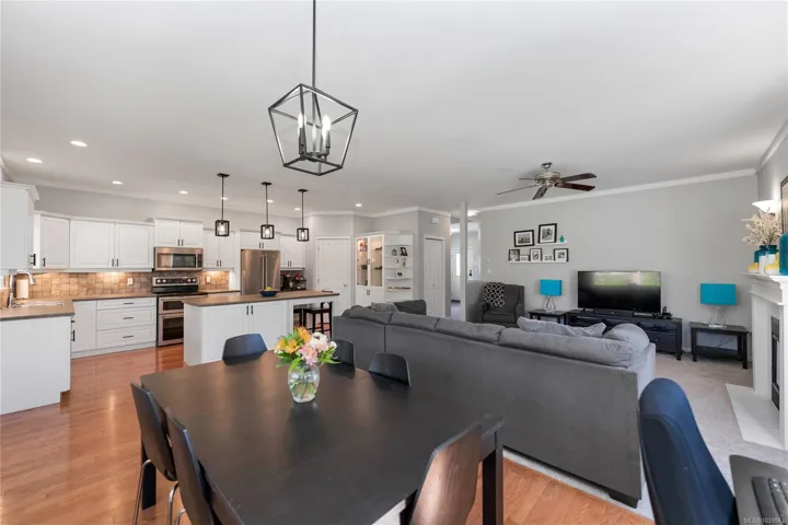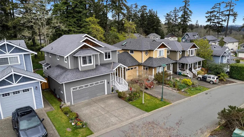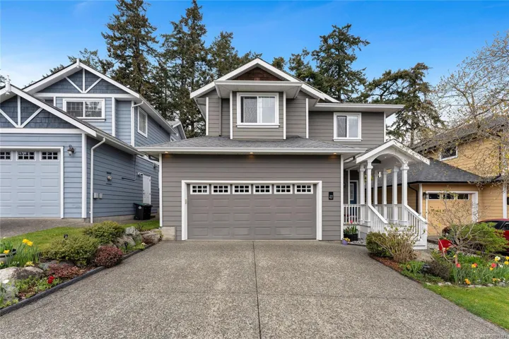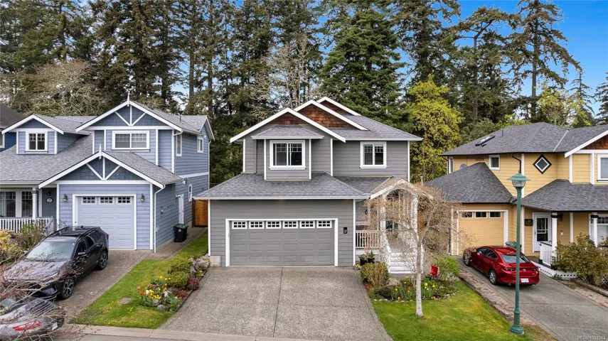 Arguably one of the most sought after houses in this neighbourhood featuring a desirable open-concept layout and double car garage. Main level offers a spacious kitchen with eating bar, large walk-in pantry, oak flooring and a gas fireplace. Mudroom includes custom built-ins and utility sink. Your west-facing back yard is a private retreat, backing directly on to Aldersmith Park. Fully irrigated with a 6 zone system. Upstairs you will find a generous bedroom with window seat and versatile second bedroom. Spacious primary has brand new ensuite, expansive walk-in closet and double walk-in shower. Paved neighbourhood path leads you right to Eagle View Elementary. Minutes from shopping at Eagle Creek Village and Vic General and quick highway access. Not strata!