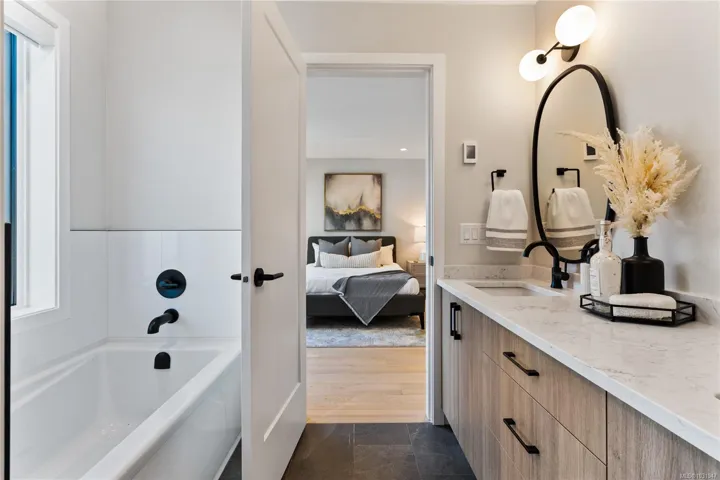 A rare opportunity to own the final home at Olympic Breeze. This bright and spacious 3-bedroom, 3-bath townhome offers 1,684ft² of thoughtfully designed living across two levels. The main floor features an open-concept layout with a modern kitchen, waterfall-edge quartz countertops, and seamless flow to the living and dining areas, opening onto a private ground-level patio with gas BBQ hookup. Upstairs, all three bedrooms are well positioned, including a generous primary suite with walk-in closet and ensuite, plus a full laundry room and a west-facing balcony. Built to BC Step Code 3, this energy-efficient home includes a heat pump, engineered hardwood, gas FP, stainless steel appliances, and a double garage with EV outlet. Backed by a 2-5-10 New Home Warranty, with potential Property Transfer Tax exemptions and GST rebates for qualifying buyers. Located in a boutique 14-home community near Olympic View Golf Course, parks, and trails – modern West Coast living in a natural setting.