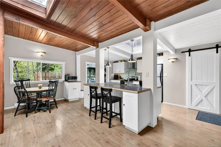 Book an appointment to view this well appointed 3-bedroom, 1,200+ square foot home set on a natural and treed 1.28-acre lot, across the road from St Mary Lake. This functional open plan home maximizes space, offering vaulted ceilings, pyramid skylights, a fireplace with an efficient insert, with a main living area that opens up onto a spacious deck – extending the living space outdoors and offering a great spot for entertaining and quiet leisure. The north-end location provides easy access to town, schools, ferries and the close proximity to the lake allows you to leave the car at home and stroll to the beach, where you can enjoy swimming, trout and bass fishing and boating. Multiple storage and wood sheds provide practical storage and the piped water servicing the home offers peace of mind in the dry months. A sweet package at a reasonable price point.
