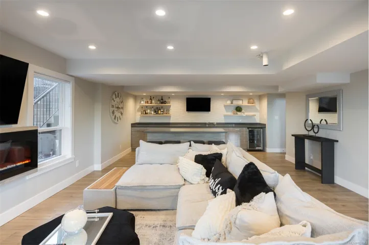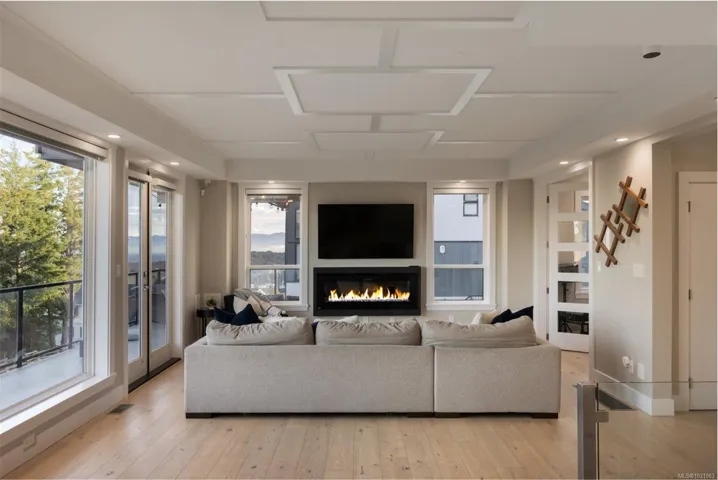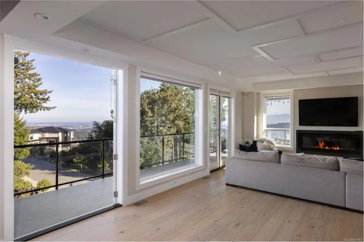 Welcome to 1414 Grand Forest Close, a custom-built family residence perched on Bear Mountain, capturing sweeping ocean, city, and mountain views from every principal room. The main level features a chef-inspired kitchen with a quartz sit-up island, built-in coffee station, and a dedicated dining area anchored by a striking custom wine wall. The living room flows seamlessly to a wraparound patio, perfect for entertaining and taking in the views. The primary suite offers a luxurious 5-piece ensuite, walk-in closet, cozy fireplace, and a private deck. Additional bedrooms feature custom built-in closets and share a well-appointed 4-piece Jack-and-Jill bath. The lower level is designed for lifestyle, complete with a spacious media room, sleek bar with beverage fridge, guest bedroom, and a versatile office. Walk out to a spacious and fenced backyard with a covered patio. Complete with a private 2 BEDROOM LEGAL suite above the garage with its own private entry and additional parking.