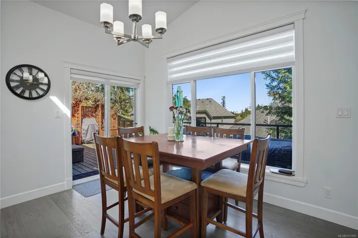 This stunning home is perfectly placed near the end of a quiet no-thru road in the sought-after Rockwood Heights of Departure Bay. Surrounded by mature cedar and arbutus trees, this private, sun-filled property blends natural beauty with contemporary West Coast style in a central, convenient location. This thoughtfully crafted 3 bed/3 bath home features an 1800 sqft main level of open-concept, single level living and is complemented by a versatile lower-level flex space, ideal for a media room or gym. Vaulted ceilings with skylights and expansive windows create a bright, airy interior. The modern kitchen includes a large island and sleek cabinetry, perfect for entertaining. Quality finishes include engineered hardwood, heated tile floors, natural gas fireplace and an efficient heat pump for year round comfort. Exterior highlights include Hardie Plank siding, cedar and stone accents, membrane roof, and hidden gutters, plus ample storage and crawl space. Showings by appointment only.