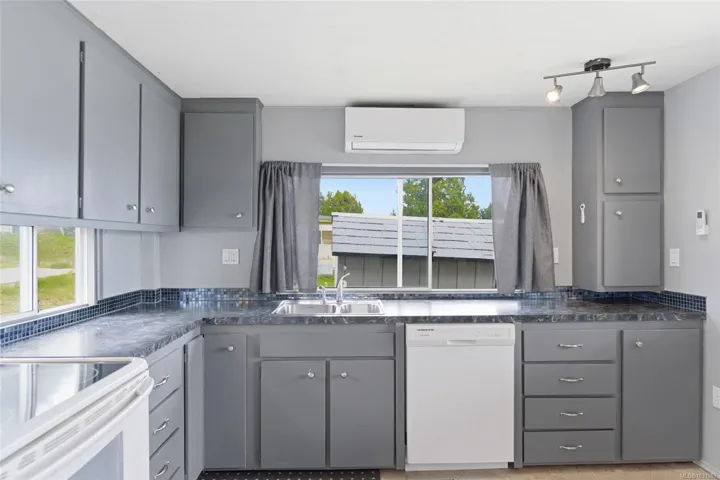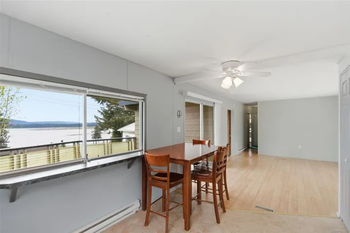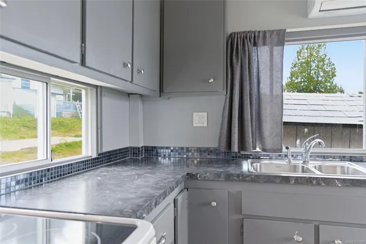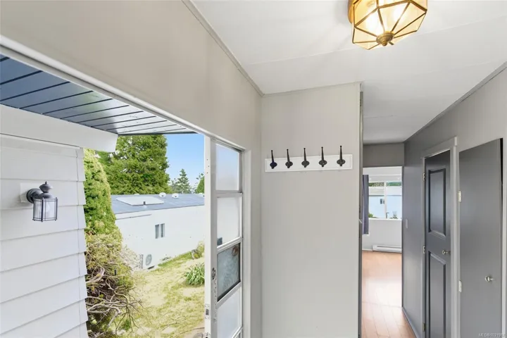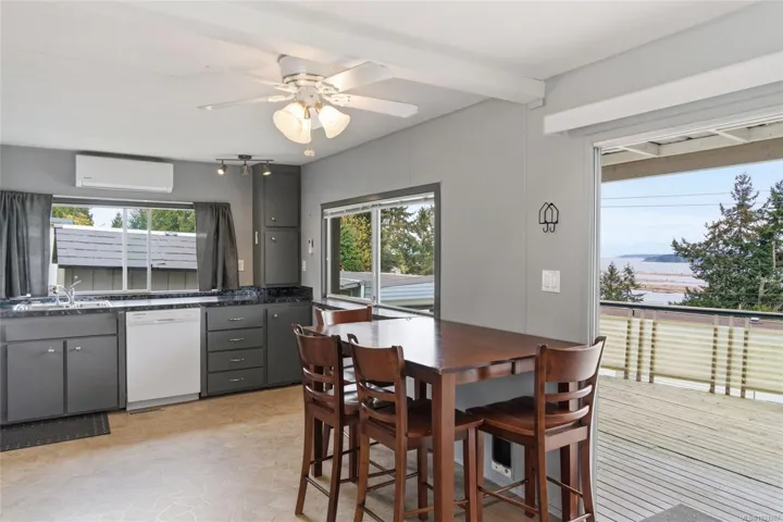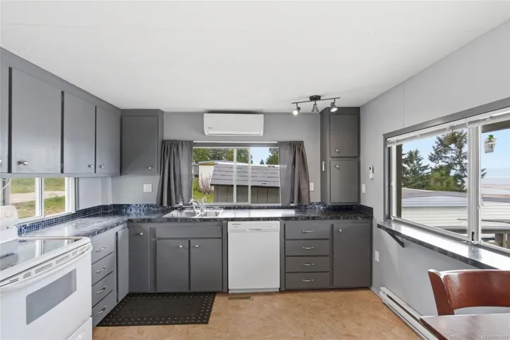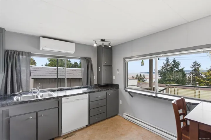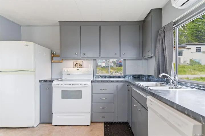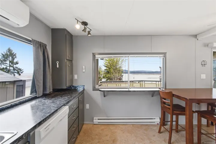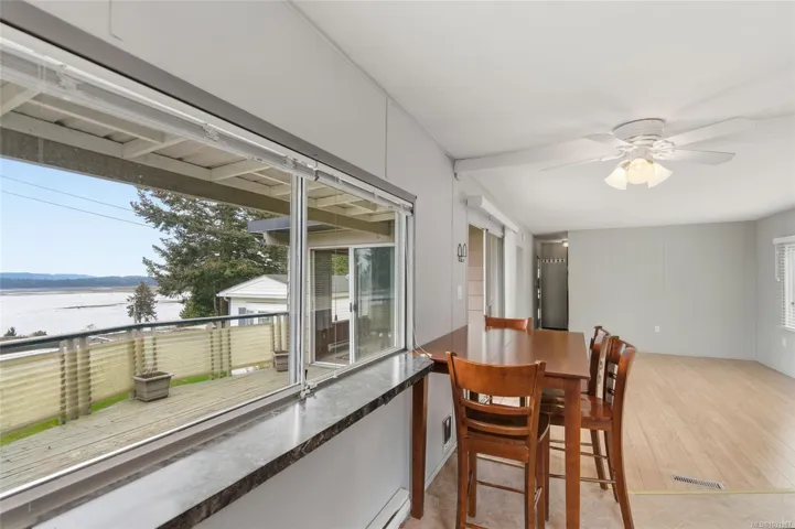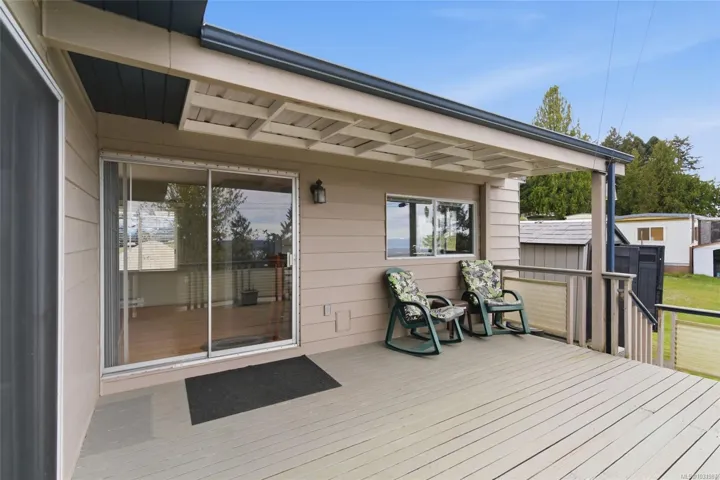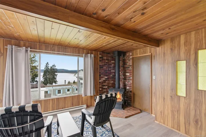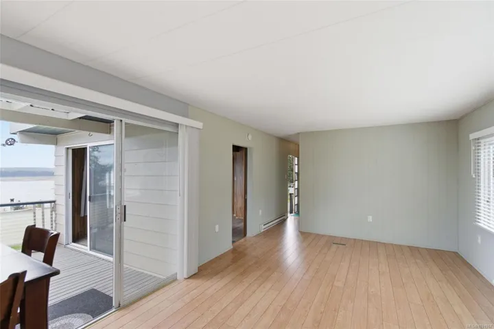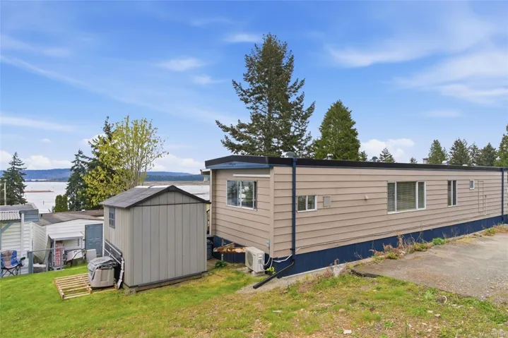 Big ocean views from one of the best locations in Petroglyph Mobile Home Park! This well-kept 2 bedroom, 1 bath home offers a bright open layout plus a spacious family room off the living area, complete with a cozy wood-burning fireplace and large windows for plenty of natural light. Step out to the expansive rear deck and take in the stunning views of Nanaimo Harbour and Gabriola Island. Numerous updates include a heat pump with air conditioning, laminate flooring, fresh paint, resurfaced kitchen cabinets, newer countertops, tiled shower surround, and a newer roof. A fantastic opportunity to enjoy comfortable, affordable living with an incredible view. Located close to Southgate Shopping Centre, this home offers proximity to shopping, restaurants, parks, & is close to all the amenities of downtown Nanaimo, making it an excellent choice for convenient living. Measurements are approximate; verify if important.