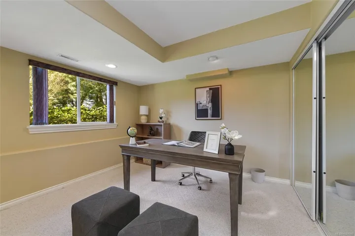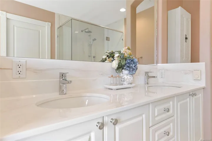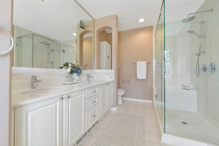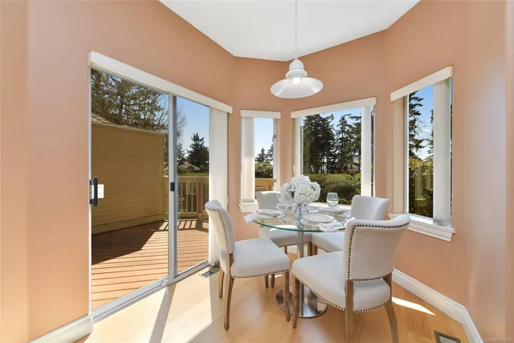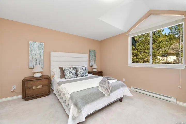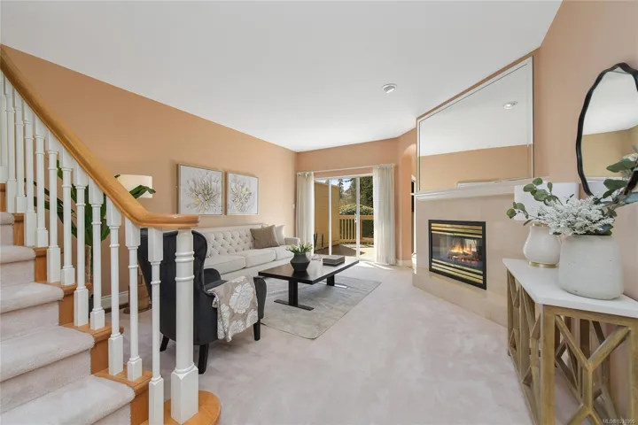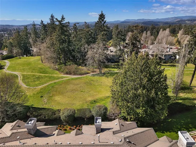 Perfectly positioned just a short stroll to Broadmead and Royal Oak Shopping Centres, Saanich Commonwealth Place, and Elk & Beaver Lake, this quality-built south-facing townhome at Royal Links is a rare offering. Lovingly maintained by its second owner, the sun-filled main level features soaring 18-foot vaulted ceilings, bright living spaces with mountain views over the former Royal Oak Golf Course, a private deck, and a chef-inspired kitchen with eating and sitting areas anchored by a stunning two-sided gas fireplace. Upstairs offers a spacious primary suite with sitting area and a generous 5-piece ensuite, while the second bedroom enjoys its own full bath. The lower level offers excellent versatility with a large rec room, office, full bath, and walk-out access to a private patio. Complete with gas furnace, hot water tank, and double garage, this 2,300+ sq ft home is set in a quiet, park-like, well-managed strata—an exceptional blend of comfort, convenience, and value.