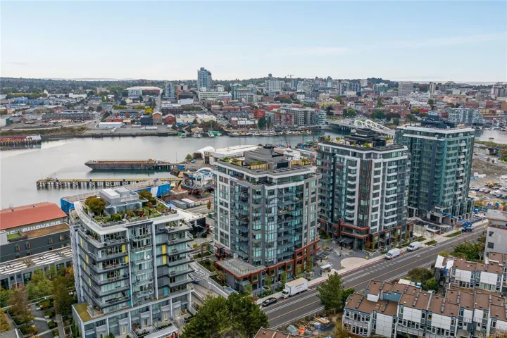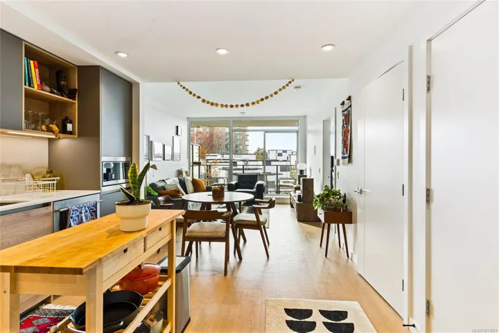 Welcome to coveted Dockside Green by Bosa Development in this bright and modern 1BED, 1BATH condo spanning 590 sq ft, located at 369 Tyee Road. Designed to maximize space and natural light, the home features a spacious southwest-facing balcony with views of the city—perfect for seamless indoor-outdoor living. The sleek kitchen showcases Italian cabinetry and premium European appliances, blending sophisticated design with energy efficiency. West Coast materials and natural finishes create a stylish and welcoming atmosphere. Situated in the heart of Vic West, you’re just steps from beloved local spots, the Songhees Walkway, and the Galloping Goose Trail, with downtown Victoria only minutes away. Residents also enjoy access to an array exclusive rooftop amenities, including shared dining pods, a fire pit, secure bike storage, and a fully equipped fitness centre.