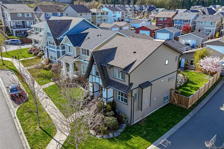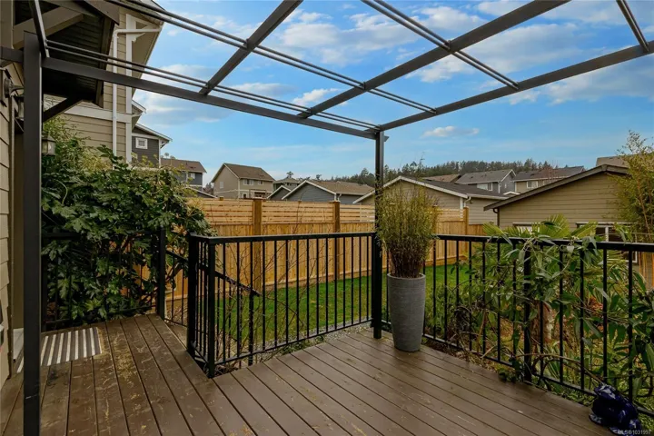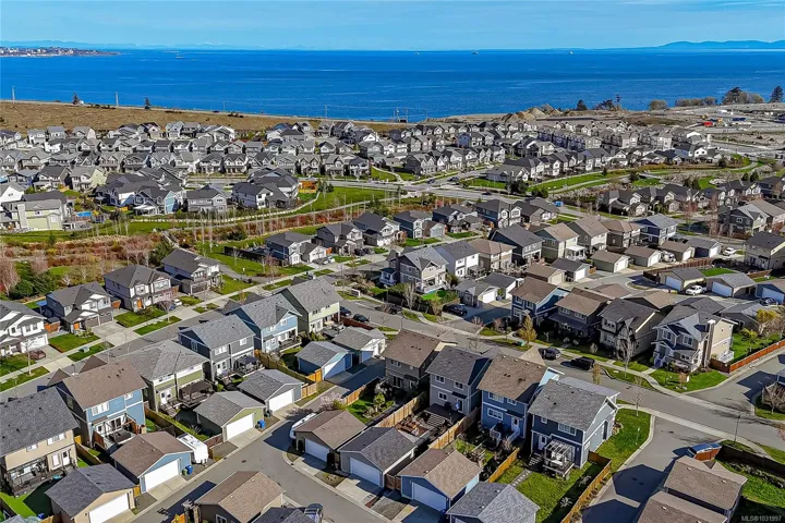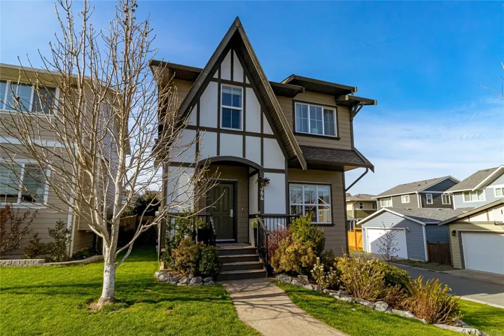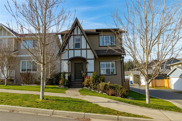 Welcome Home to this original Royal Bay charmer on a corner lot! Main level features open floor plan with a well-appointed entrance, spacious living and dining room areas and a chef’s kitchen. Upstairs find 3 bedrooms and laundry. Generous primary suite with a large 4-piece ensuite and a walk-in closet. Completing the interior is a spacious, unfinished basement. Possibilities are endless, turn it into a suite, or an extra space for the family, bathroom is already roughed in! Outside features BBQ-ready family-sized deck. Start the day on a cozy patio, perfect for your morning coffee. Large sized back yard is a gardener’s dream with mature trees, flower beds and plenty of space for more ideas. Detached double car garage and a RARE! additional outside parking spot on this property. Lots of upgrades including sprinkler system, electric car charger and a solar-ready tech installed. Steps to everything in Royal Bay Village, 10 min to Costco and 25 min to Downtown Victoria!