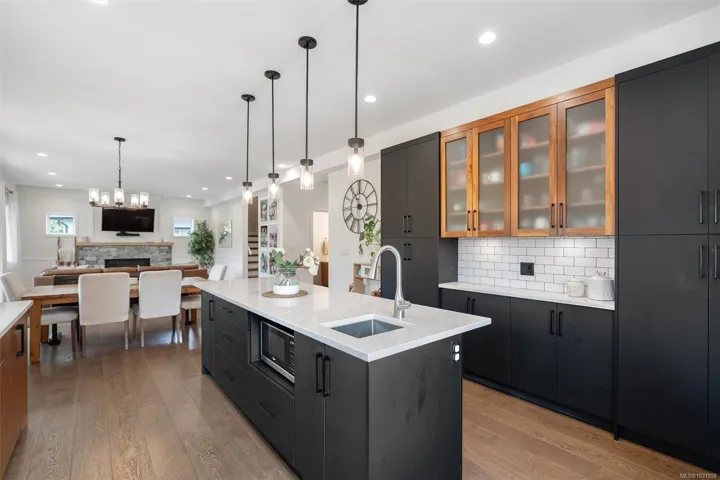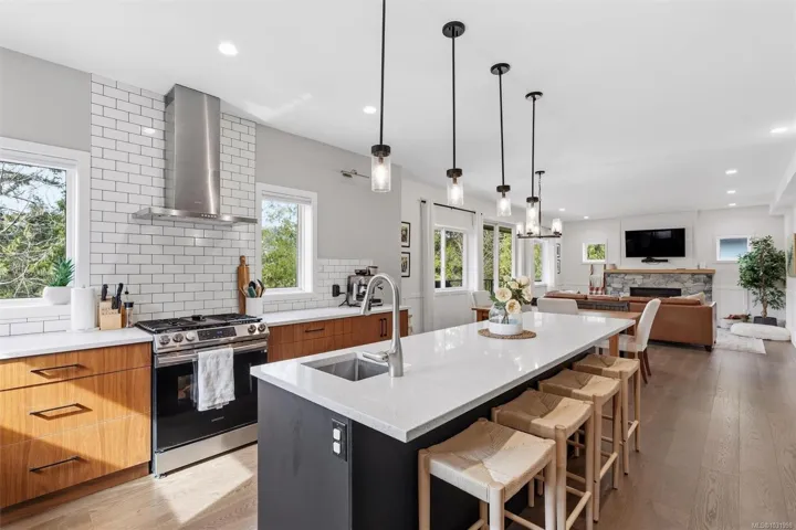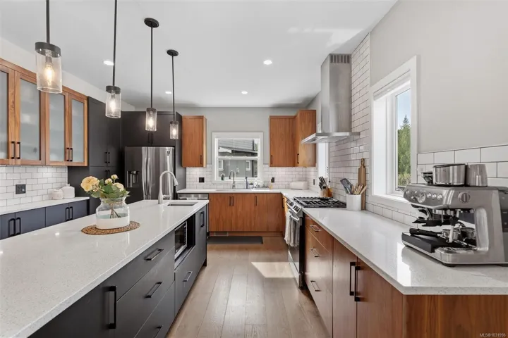 OH This Sun from 10:30-12:30. Welcome to 945 Blakeon Rd, a 2022 build by Built Green Certified builder Ash Mountain. Tucked at the end of a quiet cul-de-sac and backing onto green space, this home offers privacy while remaining close to the growing Olympic View community. With nearly 2,900 sq ft, this 3 bed + den home features a functional layout and open-concept main living area. The kitchen includes quartz countertops, a gas range, island sink, and ample prep space, flowing into the living/dining area and out to a 315 sq ft patio. Upstairs offers three spacious bedrooms, including a primary suite with a floating vanity, under-cabinet lighting, heated floors, and a walk-in rainfall shower. The lower level includes a rec room with walk-out access and a legal 1-bedroom suite. Heat pump and on-demand hot water included. Located near parks and trails, and just minutes to a new elementary school, Olympic View Golf Course, Royal Bay, and downtown Langford.