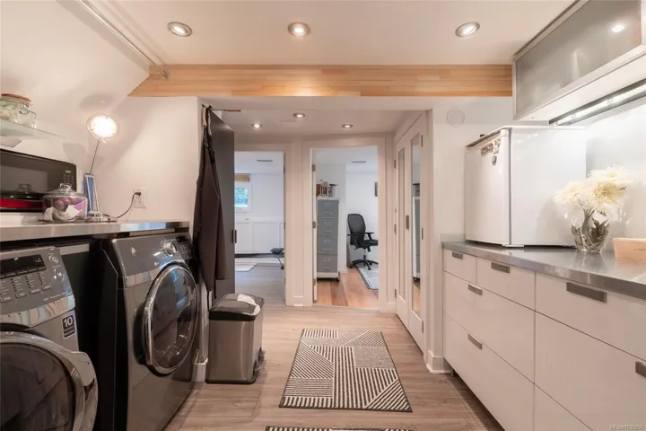 This beautifully renovated 4 bedroom, 2 bathroom bungalow is set on a generous lot in the sought-after Swan Lake neighbourhood. The refined interior offers a seamless open concept layout with elevated finishes, creating an inviting space for both everyday living and entertaining. The contemporary kitchen is thoughtfully designed with sleek countertops, quality appliances, and abundant storage. The main level features a spacious primary bedroom with room for a king bed, a second bedroom, and an elegant bathroom. The lower level provides excellent flexibility with two additional bedrooms, one with a wall bed, a full bathroom, laundry, kitchenette, and a working salon easily converted to a private two bedroom suite. Outdoors, the landscaped backyard is a private retreat with a pond, hot tub, fire pit, and shed. EV charger and RV parking add convenience. Ideally located – just moments to Swan Lake, the Lochside Trail, Uptown Mall, and transit.