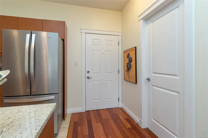 Proudly offering this SOUTH facing GROUND LEVEL 2 bed + den unit in the sought after ‘Brixton’ building. Centrally located in beautiful ‘Sidney by The Sea’ & just steps from Beacon Ave w/ all the Town’s amenities, this property affords the comfortable easy-care lifestyle you’ve been looking for. Park the car & enjoy the walkability from this location! Quality constructed in 2008, the boutique-style 22-unit complex is professionally managed w/ reasonable Strata Fees of $380/mth. Inside, large over-sized windows & a patio slider door flood the space w/ natural light. Wood floors, stone countertops, SS appliances, in-unit laundry & a thoughtful layout w/ bedrooms anchoring either side of the principal living area. The 8’x10’ den could easily be a guest room, hobby area, home office or TV lounge. Great storage, pet & rental friendly. Immediate proximity to YYJ, BC Ferries & endless outdoor enjoyment in & around the waterfront. The discerning Buyer will appreciate the quality throughout.