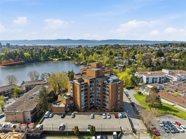 STEEL/CONCRETE! Quiet, spacious, 2 bedroom, 2 balcony, condo with tastefully updated kitchen, bathroom, and updated flooring throughout features water glimpses over the Gorge waterway. Great layout featuring east and west exposure with generous bedrooms and large closets. This beautiful unit is also set well back from the road in a remediated concrete building with newer windows and updated hallways. The building also features covered parking, guest suite, games room and access to “Malahat Room” with 360 degree water and city views to host your next event. This condo looks great, shows really well and is move-in ready! Adult oriented and pet free with unrestricted rentals. Easy access to the Gorge Water and public transportation.