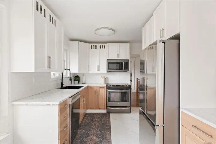 Upstairs you’ll find a sun filled living room, 3 generously sized bedrooms, 2 bathrooms and a beautifully updated white kitchen that opens directly onto a sun soaked deck, perfect for entertaining or relaxing. The lower level offers a spacious additional bedroom for the main home plus the private 2 bedroom suite with it’s own entry and laundry.