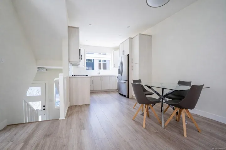 OPEN HOUSE SAT APR 18TH, 2-4pm and SUN APR 19TH, 11am-1pm. Welcome to this beautifully designed 3-bedroom, 3-bathroom end unit townhome with a bright, functional open-concept layout in a convenient location. The main level features 9’ ceilings, wide stairwells, and large windows that fill the space with natural light. The modern kitchen offers sleek cabinetry, quartz countertops, tile backsplash, under-cabinet lighting, and stainless steel appliances, flowing into the dining and living areas with a 50” linear electric fireplace. Upstairs, the spacious primary bedroom features a vaulted ceiling and a 4-piece ensuite with floating vanity and motion lighting, plus two additional bedrooms and a full bath. Enjoy a private walk-out patio, single garage, extra storage, and close proximity to shopping, parks, trails, and amenities.