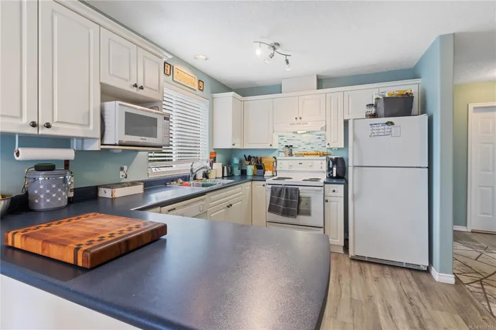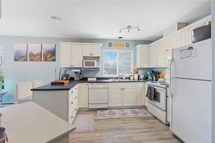 Discover this charming 3 brdm, 2 bthrm half duplex in a sought-after North Nanaimo location. This home offers a comfortable main level entry, attached garage & abundant natural light from its southern exposure & corner lot. Inside features a well-cared for home with inviting paint colours. The main living space includes a bright living room with laminate flooring & gas fireplace. The kitchen offers white cabinetry, ample cupboard space & a sunny eating nook with pleasant views. A private upper deck is located off the kitchen, ideal for relaxation. The primary bedroom boasts dual closets & a renovated 4-piece cheater ensuite. The lower level provides flexibility with two additional rooms (one suitable as a second living area), a large storage room, laundry & 4 pce bthrm. Also on the level is direct access to a lovely backyard & patio. This great neighbourhood is moments from parks & recreation. Walking distance to local schools & close to excellent shopping & restaurants.